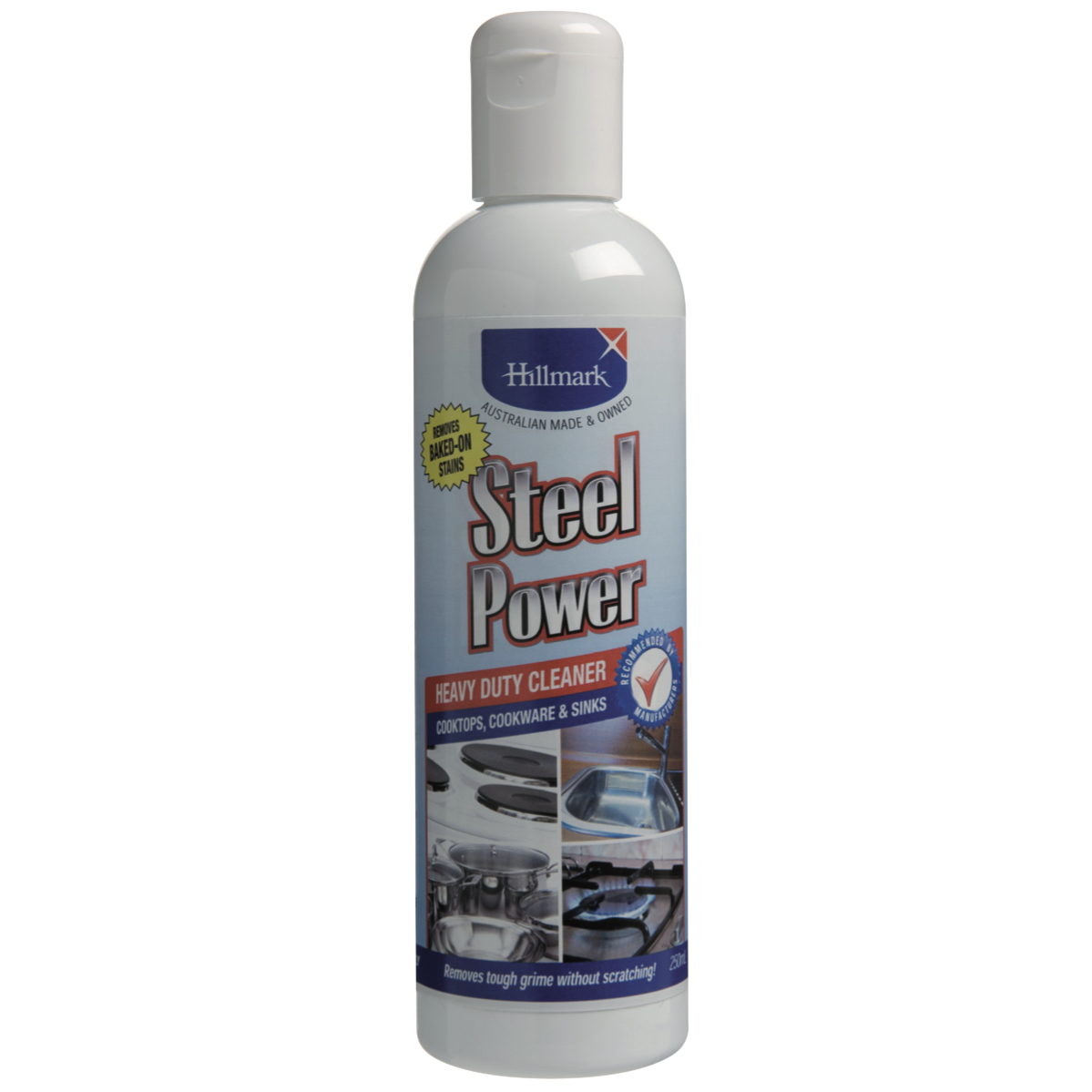 For stubborn marks or stains apply SteelPower -Dissolves & removes stains spills baked-on foods and other build up easily-Kitchen surfaces & stainless steel appliances -Fresh lemon fragrance