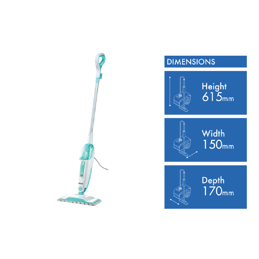 Make light work of cleaning sealed hard floors with the Shark Steam Mop. This steam mop's powerful 1050W output generates steam on demand to sanitize surfaces and remove stuck-on grime while its large 375ml water tank allows up to 30 minutes of steam cleaning before refilling. The steam mop's lightweight 1.8kg body maneuvers easily under furniture to clean hidden areas. Its 5.5m power cord gives you flexibility to clean multiple rooms without unplugging. The Shark Steam Mop comes with a dirt grip pad and mop head to trap and lock dirt in place as you clean. Enjoy sparkling floors without chemicals using this steam mop's natural steam cleaning power. Shark provides a 1 year warranty for peace of mind. The manufacturer's part number for this product is S1000. Bring this steam mop home to refresh hard floors effortlessly.