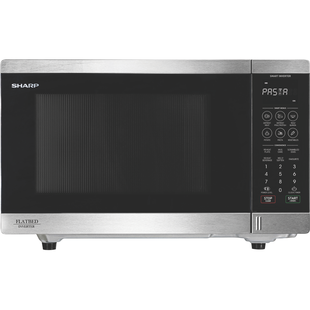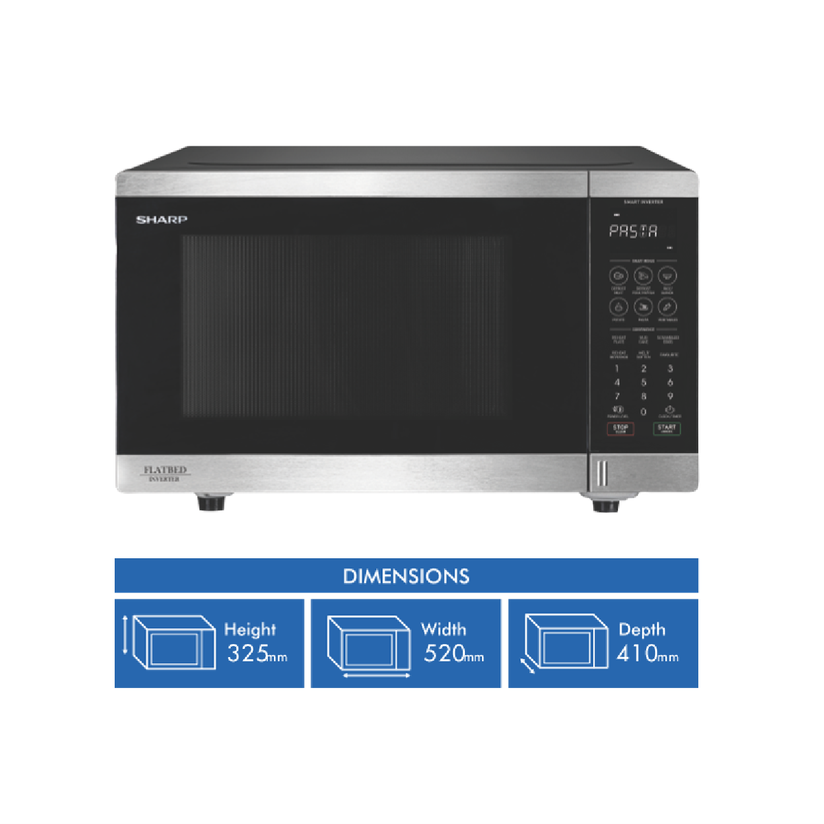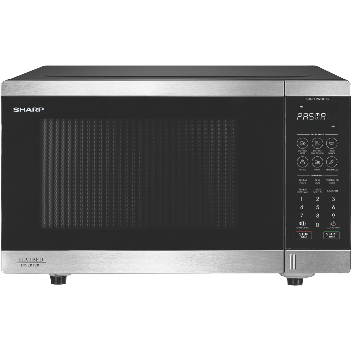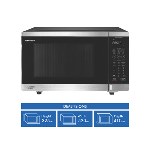 Make cooking and reheating a breeze with the Sharp 32L 1200W Stainless Steel Flatbed Microwave. This sleek microwave oven features a 32 litre capacity and a powerful 1200 watt output to quickly and evenly heat defrost or cook a variety of foods. The stainless steel exterior provides a modern look that complements any kitchen decor. With a spacious 520mm width and 325mm height you'll have plenty of room for larger plates and dishes. The touch control panel allows you to easily select from 23 auto cook menus and 6 auto defrost options using the smart sensor technology. Additional highlights include inverter technology for constant power 11 power levels and a bright LED display. The flatbed design allows you to fit more inside and makes cleaning the interior a snap. With 1 year warranty and an included cookbook and manual the Sharp 32L 1200W Flatbed Microwave will be your new go-to for quick and delicious meals. The manufacturer's part number for this product is SM327FHS. Make your life simpler with this versatile easy-to-use microwave today.