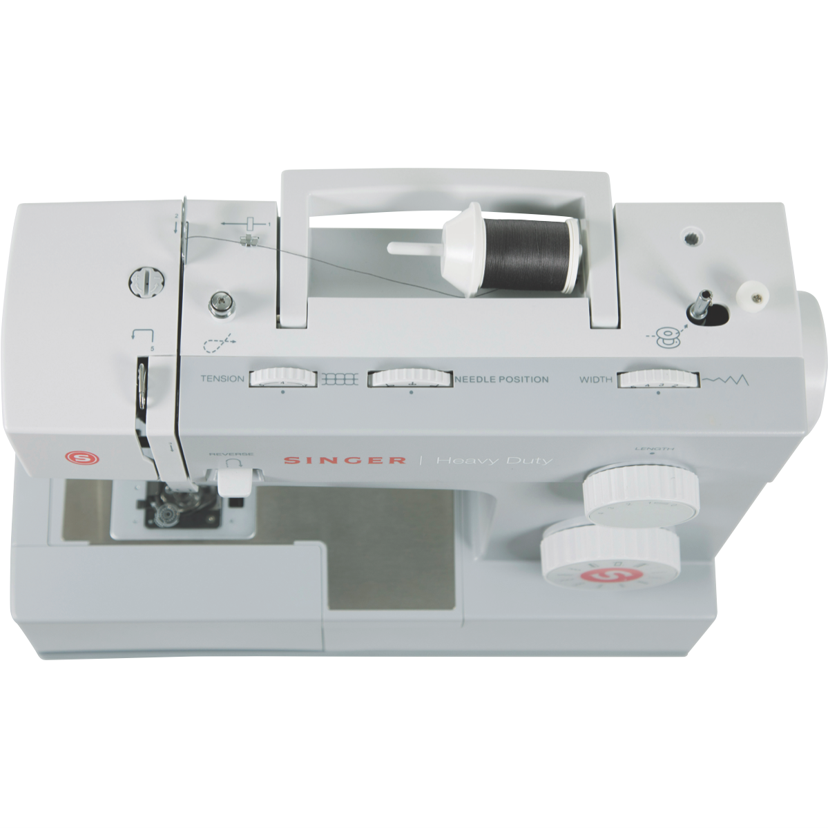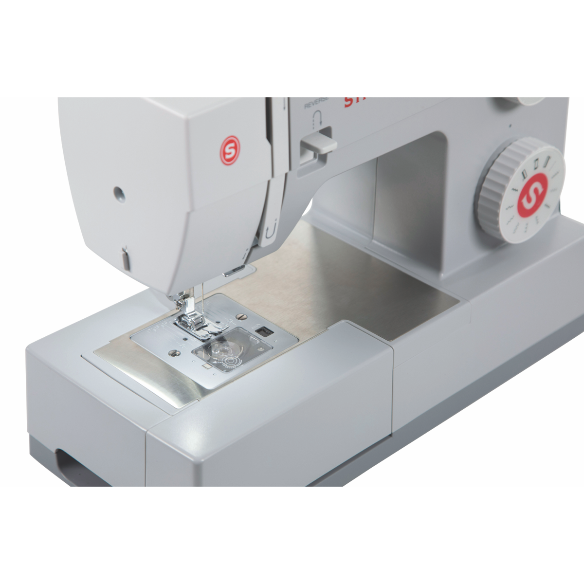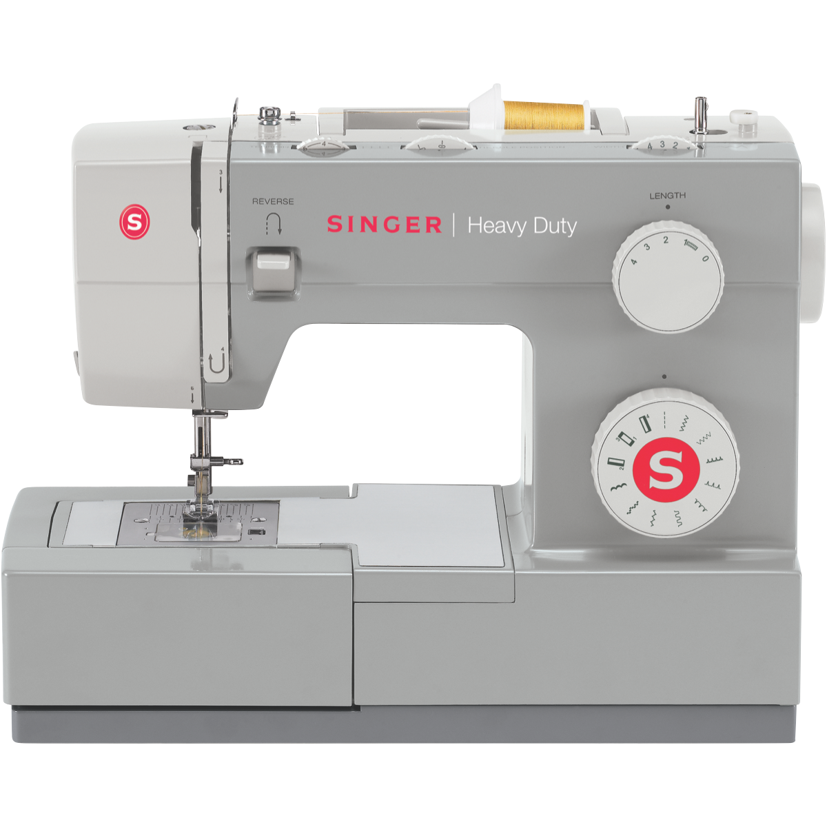 Take your sewing skills to the next level with the Singer Heavy Duty 4411 sewing machine. This versatile grey sewing machine boasts a heavy duty metal frame for skip-free sewing and stability. With 11 built-in stitches a 15.9cm needle to tower clearance and 110 stitches per minute you'll breeze through hems seams and decorative stitches on all types of fabrics. LED lighting illuminates your work area while the adjustable presser foot pressure lets you sew delicate fabrics with ease. At 6.35kg this sewing machine is 60% stronger than standard models yet still portable enough to take to classes or sew on the go. With a raft of handy accessories like zipper and buttonhole feet this Singer sewing machine comes ready to tackle any project. After enjoying the 69 stitch applications take advantage of the 25 year manufacturer's warranty for peace of mind. The manufacturer's part number for this product is S4411. Discover your creativity with the feature-packed Singer Heavy Duty 4411 today.