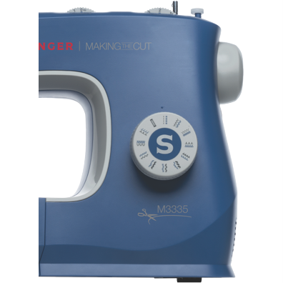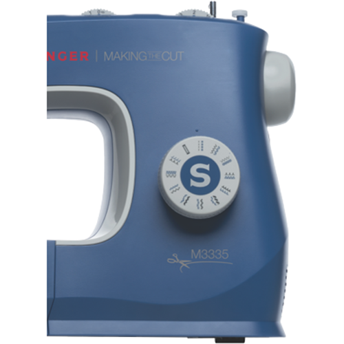 Make sewing magic with the Singer Making The Cut M335 sewing machine. This heavy duty metal frame machine comes in a stylish blue color and is built for creativity with 23 built-in stitches and 97 stitch applications. The StayBright LED lighting illuminates your workspace while the front loading bobbin built-in threader and extra high presser foot lifter make threading and sewing a breeze. With a generous 14.5cm work space control knobs and handy storage like the spool holders you'll have everything you need to start your next project. The multiple accessories included help you tackle various techniques like installing zippers buttons and more. Weighing just 6.2kg it's easy to transport the M335 between craft rooms or take it to classes. Measuring 305mm high 381mm wide and 157mm deep it fits nicely on any sewing table. Unleash your imagination with the versatility of the Singer Making The Cut M335 sewing machine. The manufacturer's part number for this product is SM3335.