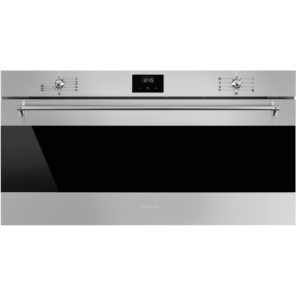 Cook up a storm in your kitchen with the Smeg 90cm Classic Thermoseal Oven. With its stainless steel finish and retro-inspired design this multifunction electric oven will be the highlight of your cooking space. Whip up delicious meals for the whole family with its generous 100L capacity interior. Its 9 functions allow you to bake roast or grill with convection heat for fast even cooking results. The DIGIscreen LED display and control knobs make operation a breeze. Safety features like the child lock provide peace of mind when little helpers are nearby. Smeg s patented Thermoseal technology and triple-glazed cool touch door keep the heat inside the oven and surfaces cooler. The enamel interior resists stains and cleans easily so your oven will look as good as new for years to come. With included accessories like the chrome grill insert and baking tray you ll have everything needed to cook up a storm. Bring retro flair and modern function to your kitchen with the Smeg 90cm Classic Thermoseal Oven. Manufacturer Part Number: SFRA9300TVX.