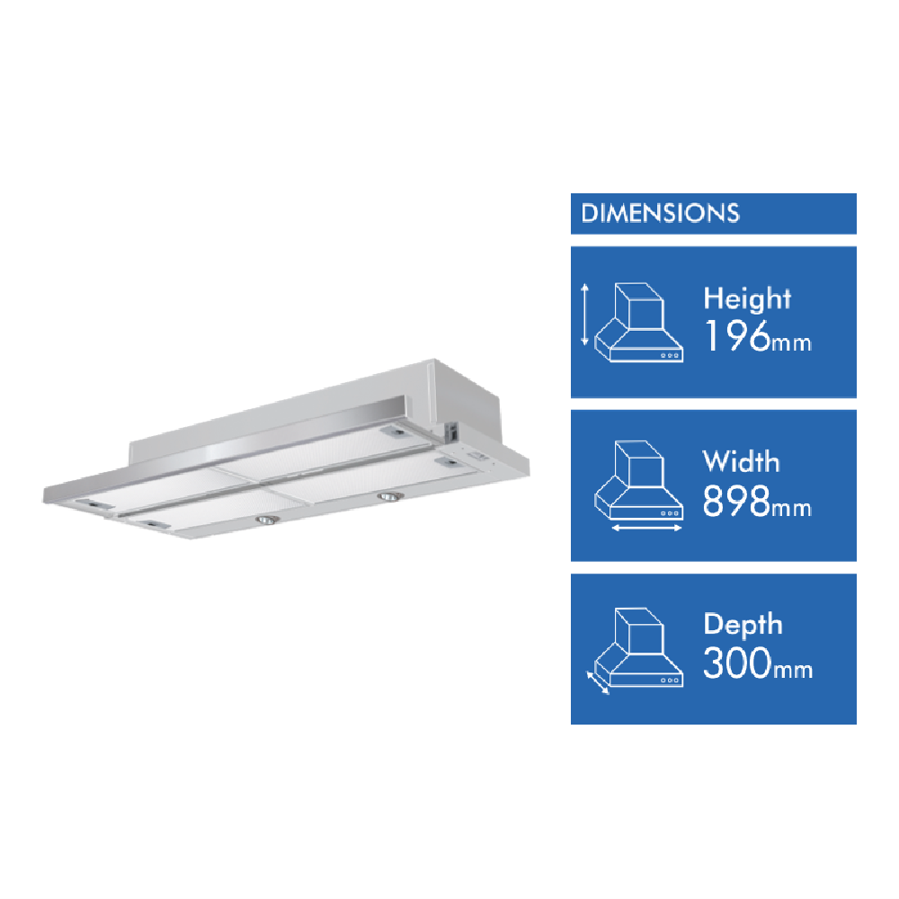 • 90 Centimetre ducted and recirculating with 2 LED lights
