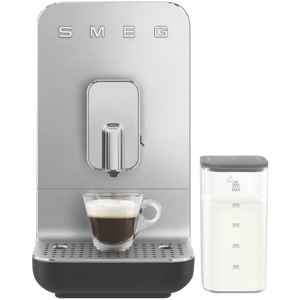 Upgrade your morning brew with the sleek and stylish Smeg Bean To Cup Coffee Machine in matte black. This automatic coffee maker is designed to simplify your coffee routine while delivering barista-quality results. With a powerful 1350-watt motor and 19 bar pump pressure you can expect rich full-bodied espresso every time. The built-in grinder ensures the freshest flavor while the adjustable settings let you customize your coffee just the way you like it. Whether you're in the mood for a classic espresso a creamy cappuccino or a frothy latte macchiato this machine has you covered with its easy-to-use 'One Touch' function. Plus the generous 1.4L water tank means fewer refills between brews. Crafted with a durable plastic body and an elegant aluminum front panel this coffee machine is built to last. And with a 2-year manufacturer's warranty you can enjoy your daily coffee with peace of mind. Elevate your coffee game with the Smeg BCC13BLMAU Bean To Cup Coffee Machine.
