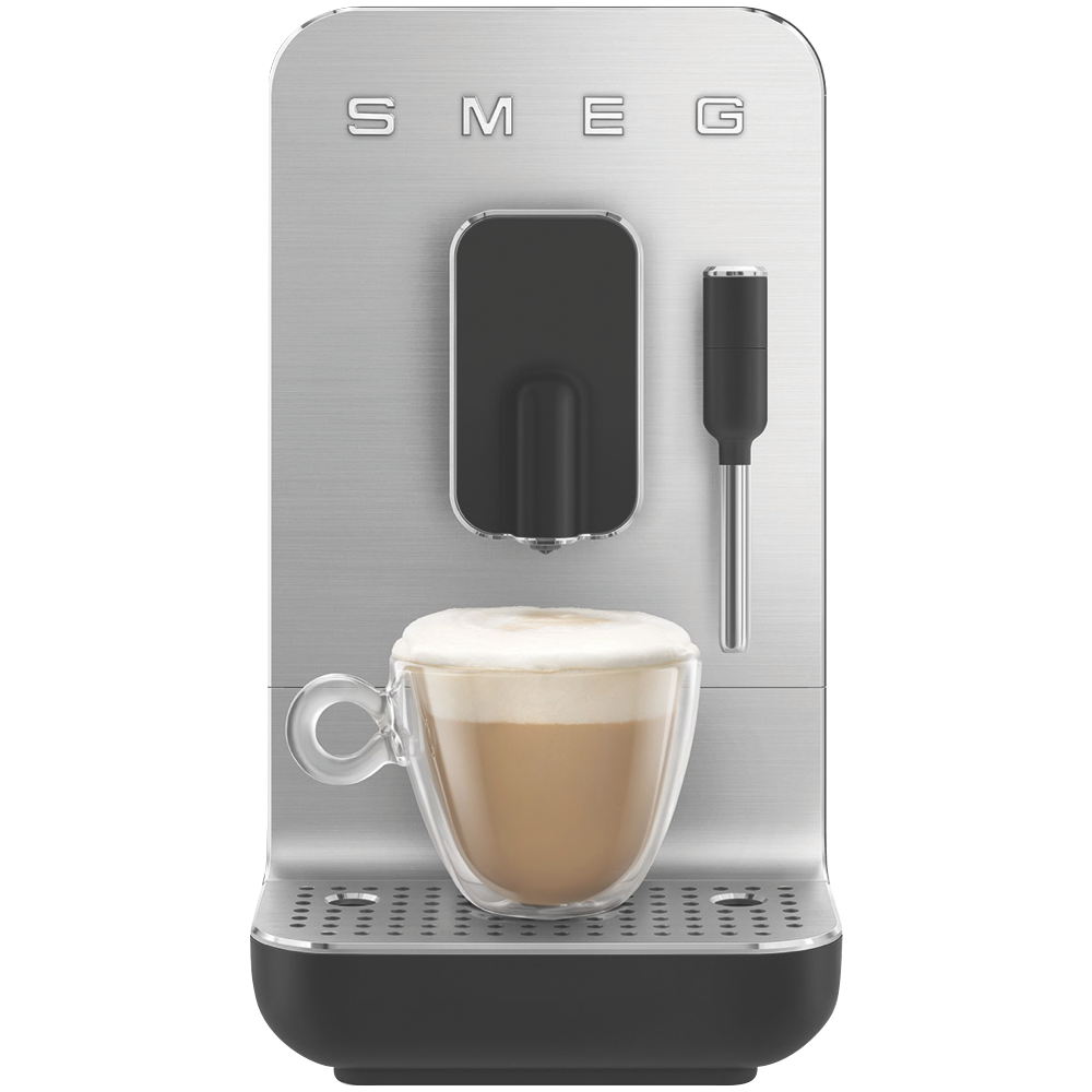 Elevate your coffee game with the sleek and stylish Smeg Bean To Cup Coffee Machine. This automatic coffee machine boasts a brushed aluminium front panel in a sophisticated matte black finish. With a powerful 1350-watt motor and 19 bar pump pressure you can enjoy barista-quality coffee at home. The built-in grinder ensures the freshest brew while the 1.4L water tank provides plenty of capacity for multiple cups. Want to add a creamy touch? The integrated milk frother lets you craft lattes and cappuccinos with ease. Customize your coffee just the way you like it with adjustable settings for coffee length dispenser height and water. Cleaning is a breeze with the included cleaning brush and steam wand cleaning needle. Measuring 433mm high 336mm deep and 180mm wide this 8.4kg machine will be a standout addition to your kitchen. Enjoy peace of mind with a 2-year manufacturer's warranty. Experience the convenience and quality of the Smeg BCC12BLMAU Bean To Cup Coffee Machine.