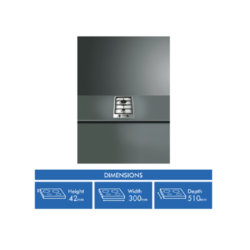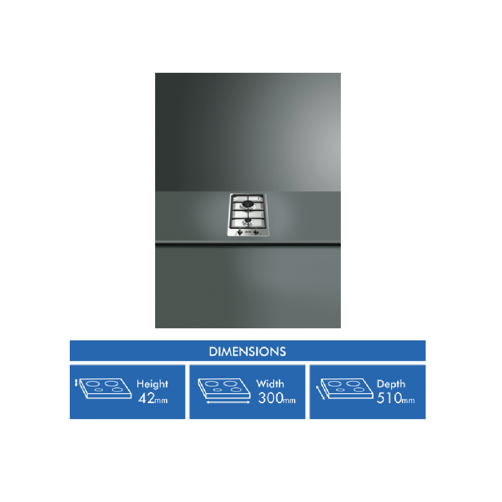 Elevate your kitchen with the stylish Smeg 30cm Gas Cooktop. This sleek stainless steel gas cooktop packs power and panache with its two ultra-responsive burners including a mighty wok burner to handle your high-heat cooking needs. The automatic ignition and flame failure safety device provide reliable safe operation every time. With robust cast iron trivets and dishwasher-safe burners cleanup is a breeze. This cooktop's compact 300mm width allows flexible installation in tight spaces or as part of your ideal kitchen layout. Bringing Italian flair to your cooking the Smeg Gas Cooktop adds a touch of luxury with its chic old-school knobs. With a 2 year manufacturer's warranty this cooktop is built to last while adding a dash of retro charm to your culinary space. The manufacturer's part number for this product is PGA32G. Bring home the beauty and versatility of the Smeg 30cm Gas Cooktop today.