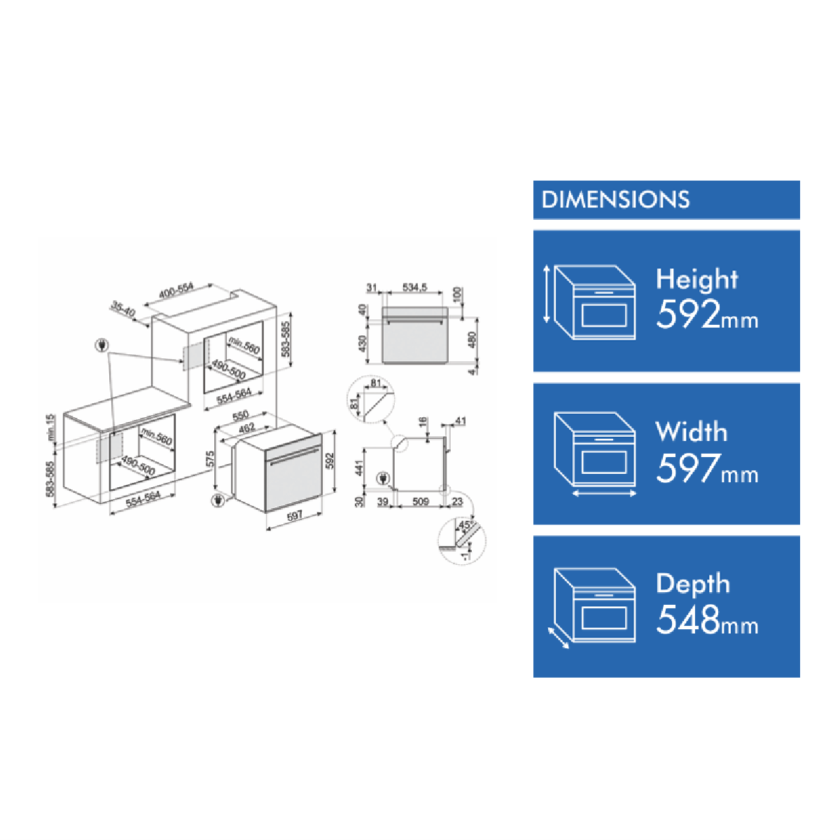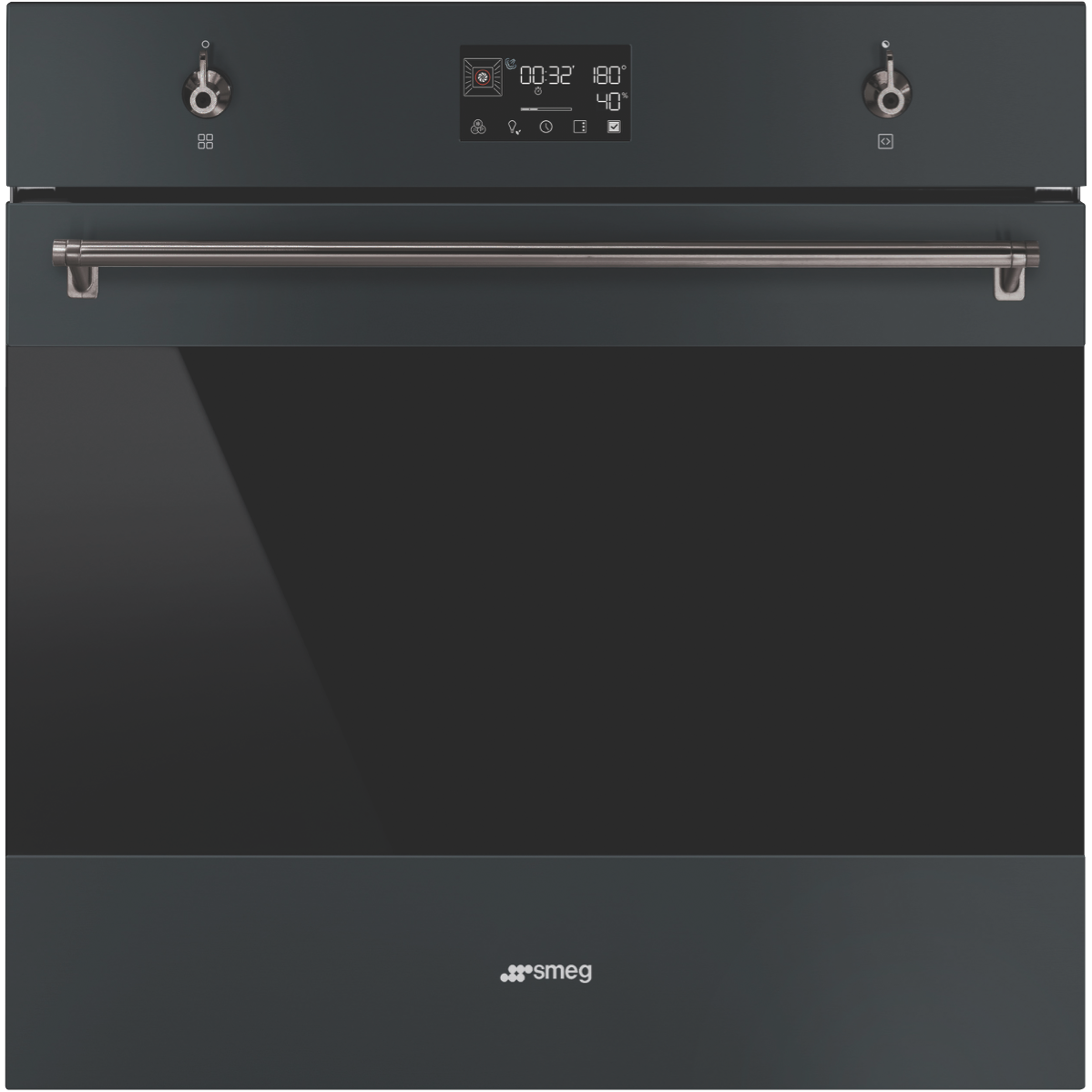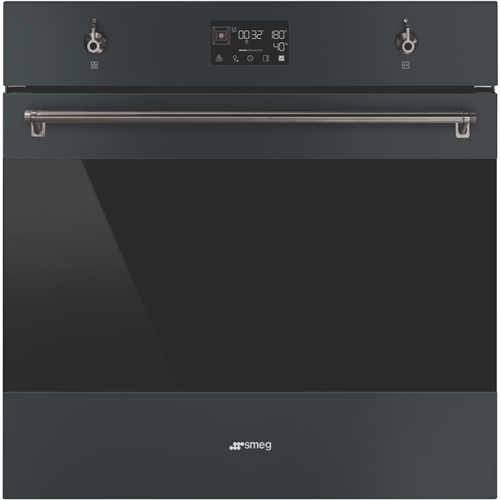 Enhance your kitchen with the sleek matte black Smeg 60cm Classic Pyrolytic Steam Oven. This electric multifunctional oven combines impeccable Italian design with advanced cooking technology for superb results. With a generous 78L capacity the Smeg Classic Oven offers 12 diverse cooking functions including fan assisted fan forced grill convection and air fry. The built-in pyrolytic cleaning reduces food residue to ash for effortless oven maintenance. Innovative steam cooking seals in moisture and nutrients. Probe cooking takes the guesswork out of meat dishes. Cool Door technology prevents accidental burns. The Smeg Classic Oven is easy to operate with intuitive controls and comes fully equipped with accessories like chrome shelves grill insert and enamelled baking trays. With a stylish matte black finish and chrome trims this feature-packed Smeg oven adds a touch of classic elegance to your kitchen. The manufacturer's part number for this product is SOPA6302S2PN. Bring home the Smeg 60cm Pyrolytic Steam Oven today for delicious meals and easy oven cleaning.