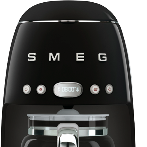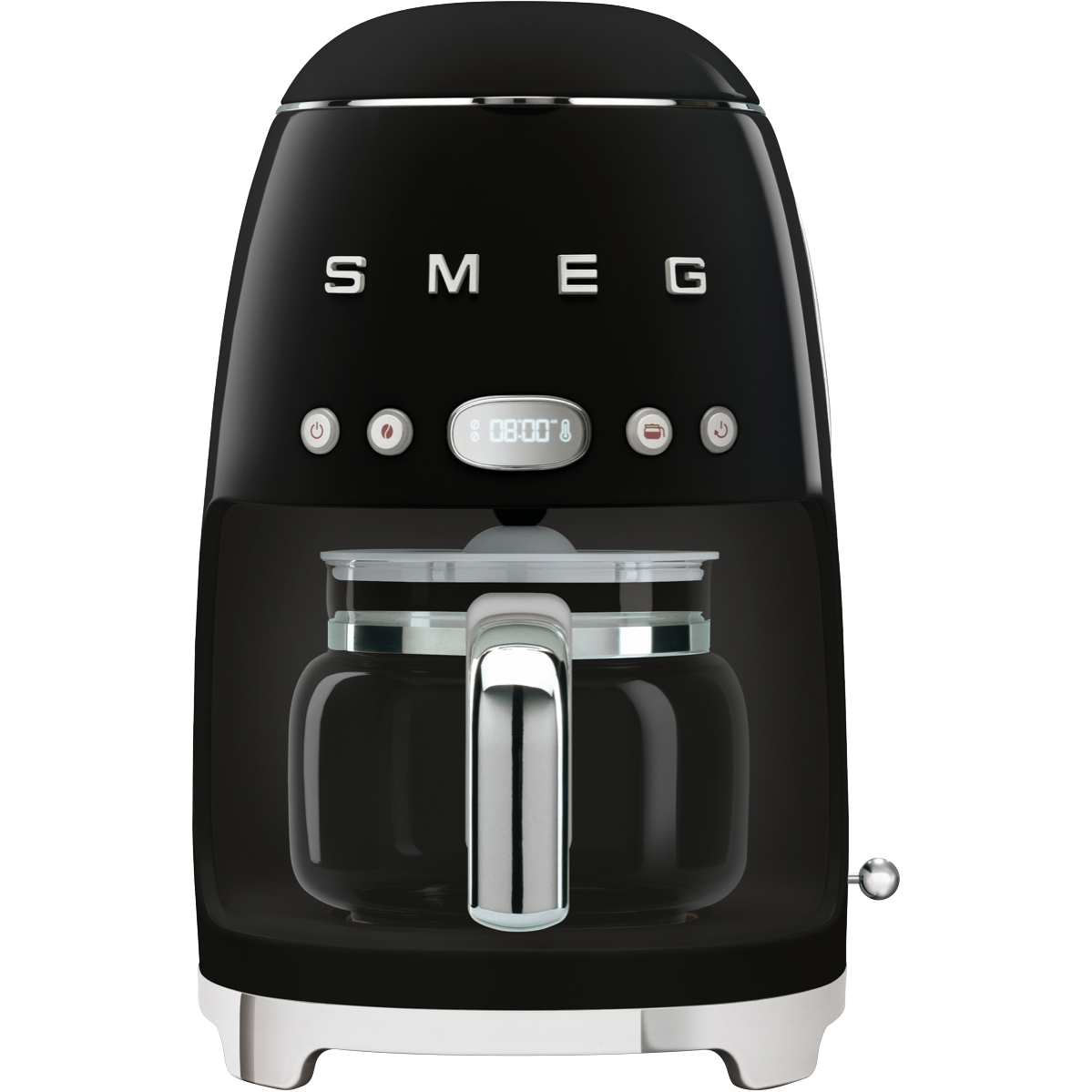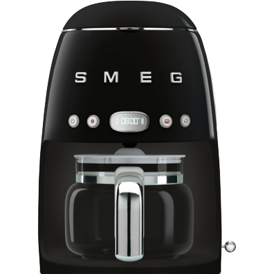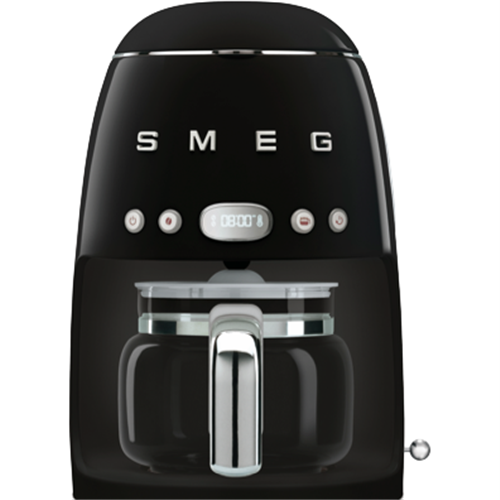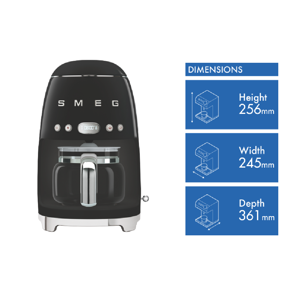 A must-have for coffee lovers the sleek Smeg Drip Coffee Machine brings retro charm to your kitchen counter in a compact design. With a generous 10 cup capacity and 1.25 litre carafe this coffee maker simplifies your morning routine. Programmable auto start lets you wake up to freshly brewed coffee. Maintaining the optimal temperature the keep warm function ensures your coffee is piping hot for second cups. The LED display with integrated clock allows easy programming while the water level indicator takes the guesswork out of refilling. With a nonslip base and one year manufacturer's warranty this coffee machine makes an elegant addition to any home. Towards the end the manufacturer part number DCF02BLAU and warranty information is provided. This stylish coffee maker is sure to be your new morning ritual.