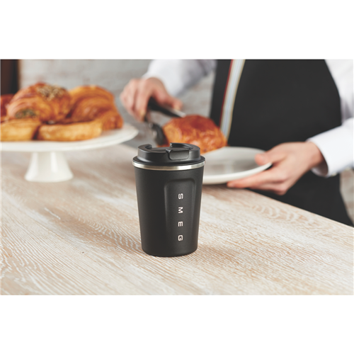 Take your coffee on the go in style with the Smeg Travel Mug. Crafted from durable stainless steel inside and out this 350ml travel mug keeps your brew hot for hours. The sleek modern design features a twist-and-lock lid to prevent spills making this the perfect companion for your commute or outdoor adventures. With its 12 month manufacturer's warranty you can rest assured this travel mug is built to last. Whether you're a coffee connoisseur or just need your daily caffeine fix the Smeg Travel Mug lets you sip your morning coffee anywhere your travels take you. The manufacturer's part number for this product is KCUP350. Check out this must-have drinkware essential today.
