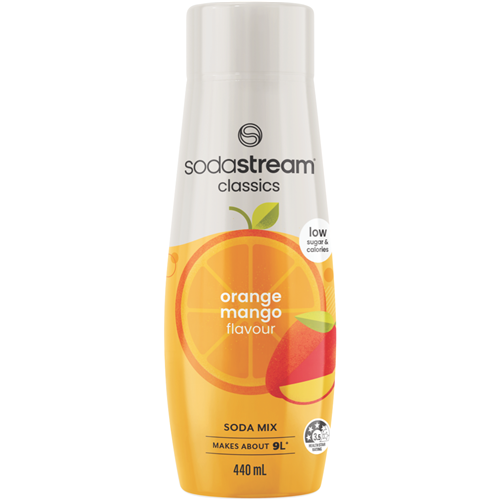 Bring a burst of tropical flavor to your sparkling water with SodaStream's Classic Orange Mango Syrup. This naturally sweetened colored and flavored syrup lets you craft your own refreshing carbonated drinks at home. Each bottle makes approximately 9 liters of delicious orange mango goodness - perfect for sipping on a warm day or serving to friends and family. Simply add a splash to your SodaStream carbonated water stir and enjoy. It's an easy way to put a fruity twist on your favorite bubbly beverages. Part number 1024258611.