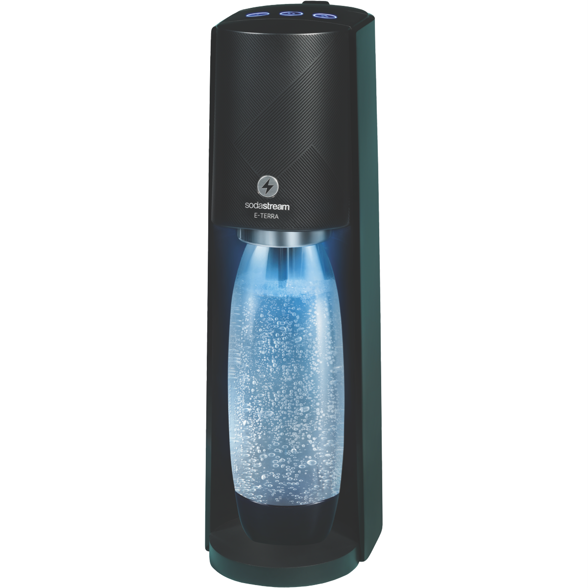 Bring some sparkle to your day with the Sodastream E Terra Black Sparkling Water Maker. This sleek and stylish soda maker lets you create delicious carbonated drinks at home with just the push of a button. The 1L bottle is dishwasher safe for easy cleaning while the three carbonation levels let you customize your fizz. Plus the LED electric carbonation and patented Quick Connect system make it a breeze to use. You'll love the convenience of having fresh sparkling water on tap. Comes with a 2 year manufacturer's warranty. 1012911611.