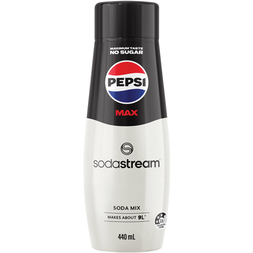 Quench your thirst with the refreshing taste of Pepsi Max now available in a convenient Sodastream syrup. This 440ml bottle of concentrated Pepsi Max flavoring is designed specifically for use in Sodastream machines allowing you to add bubbles and create up to 9 litres of your favorite soft drink at home. With Sodastream and Pepsi Max syrup you can avoid lugging heavy bottles and cans from the supermarket while still enjoying the crisp sugar-free flavor you love. Simply add the Pepsi Max concentrate to your Sodastream machine as directed then push the button to carbonate and enjoy an ice-cold glass of Pepsi Max anytime. This Sodastream Pepsi Max syrup brings the genuine taste you expect from Pepsi in a format that lets you customize your bubbly beverage just the way you like it. Make a single serving to sip or mix up a pitcher for the whole family - the options are endless with Sodastream Pepsi Max syrup. Stay refreshed all day long without the calories and guilt of sugary soft drinks.The manufacturer's part number for this Sodastream Pepsi Max syrup is 1924202610. Check out Sodastream Pepsi Max syrup today to enjoy the Pepsi taste you love with the convenience of making it fresh at home.