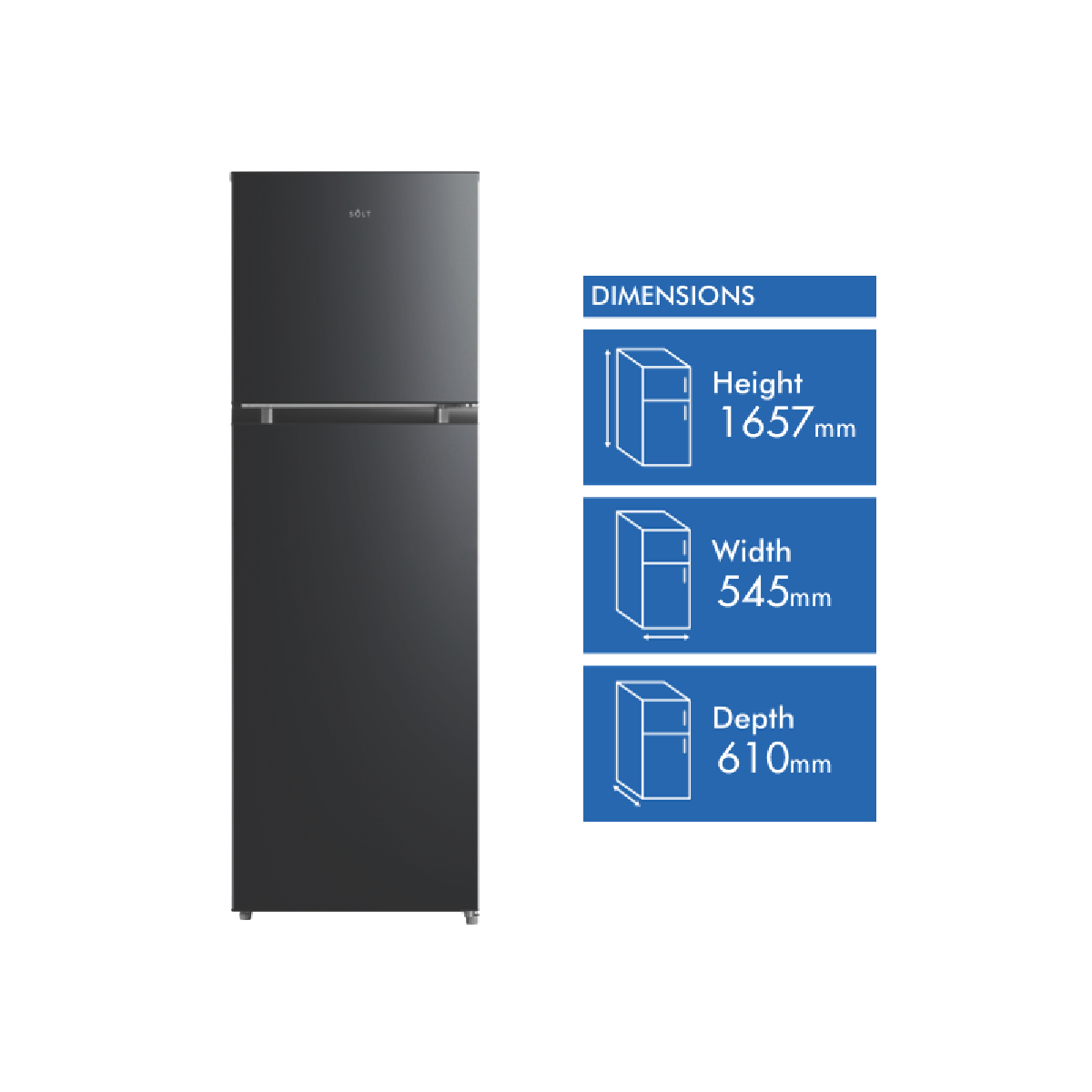 The Solt 266L Top Mount Refrigerator blends effortless functionality and reliable cooling into a sleek black exterior offering ample 266 litre capacity for busy families. Featuring 206 litres of fridge space and 60 litres of freezer capacity this top mount refrigerator provides spacious storage for fresh foods and frozen goods. Its durable black steel finish and right hand hinged reversible door add versatile aesthetic appeal. With digital temperature controls and quiet 43 decibel operation this fridge delivers convenient cooling power while minimizing noise. Additional highlights include adjustable slide damper frost free design LED lighting and 2 year manufacturer warranty for lasting performance. The Solt's combination of generous storage adjustable cooling easy access and quiet operation makes it an ideal choice for households seeking a top mount refrigerator to rely on every day. The manufacturer's part number for this product is GGSTM266B. For effortless organization and food freshness look no further than the Solt 266L Top Mount Refrigerator.