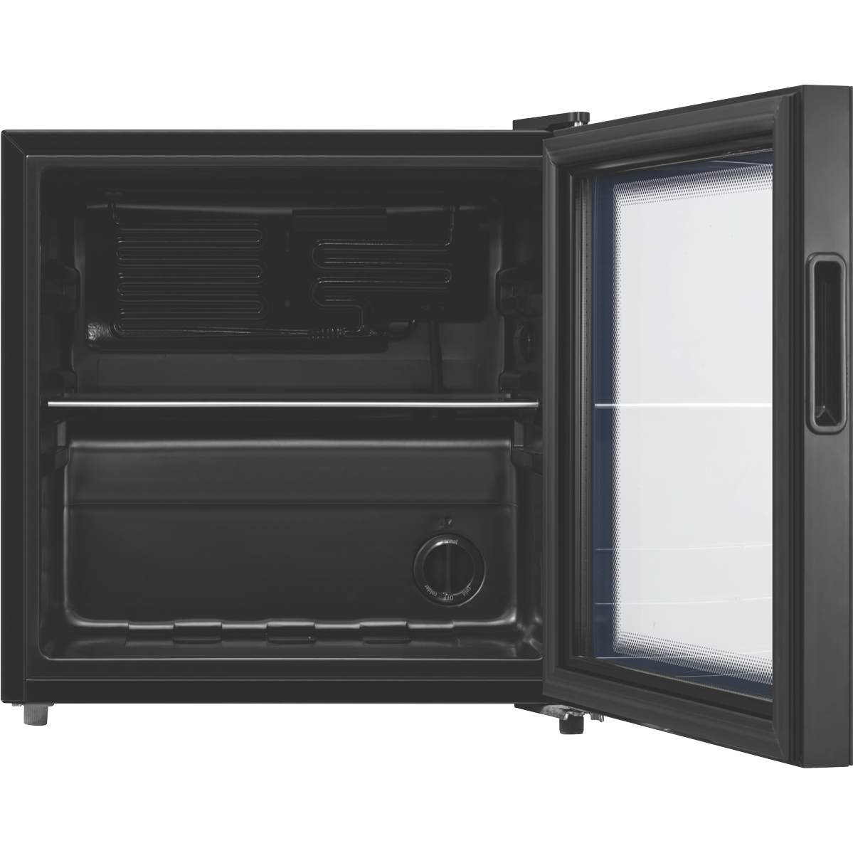 Additional Features 48 Can Capacity, 1 to 10C Temperature Range, Reversible Door, Double Glazed Glass Door, Glass Shelf, Black glass finish, Adjustable foot, Recessed door handle,