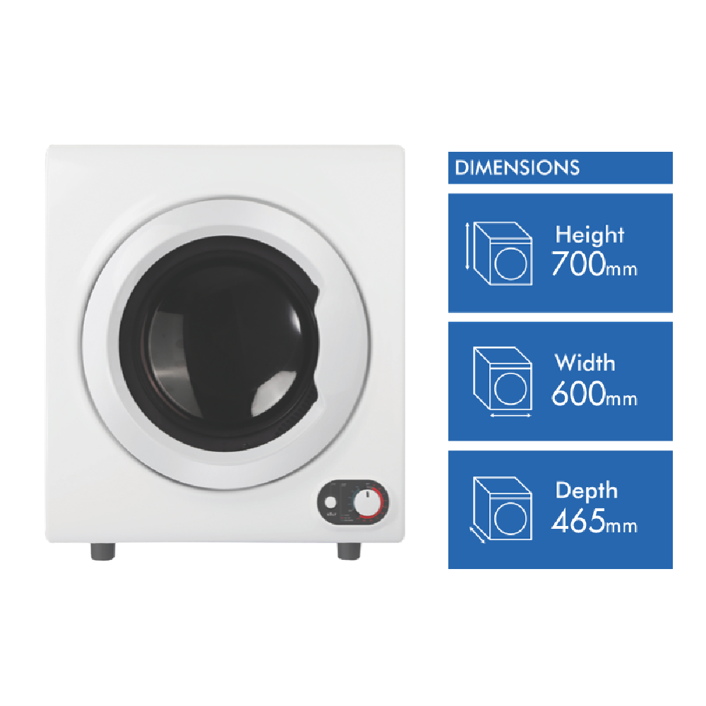 Tackle the laundry pile in no time with the Solt 4.5kg Vented Dryer. This clothes dryer boasts a generous 4.5kg drying capacity perfect for handling multiple loads of wet clothes in one go. The vented design efficiently removes moisture while the stainless steel inner drum gently tumbles garments to prevent wrinkles. With heat air and cool down drying modes you can customize cycles to suit different fabrics. Set the built-in timer to run the dryer for the desired duration. This dryer features adjustable leveling legs for stability and its compact 600mm x 700mm x 465mm dimensions with wall mountable design make it easy to install in small spaces. Protect your investment with a 2 year manufacturer's warranty. The Solt dryer will make quick work of laundry day with its convenient features. The manufacturer's part number for this product is GGSVDE45W. Finally reduce laundry day hassles and bring home the Solt 4.5kg Vented Dryer today for fast efficient clothes drying.