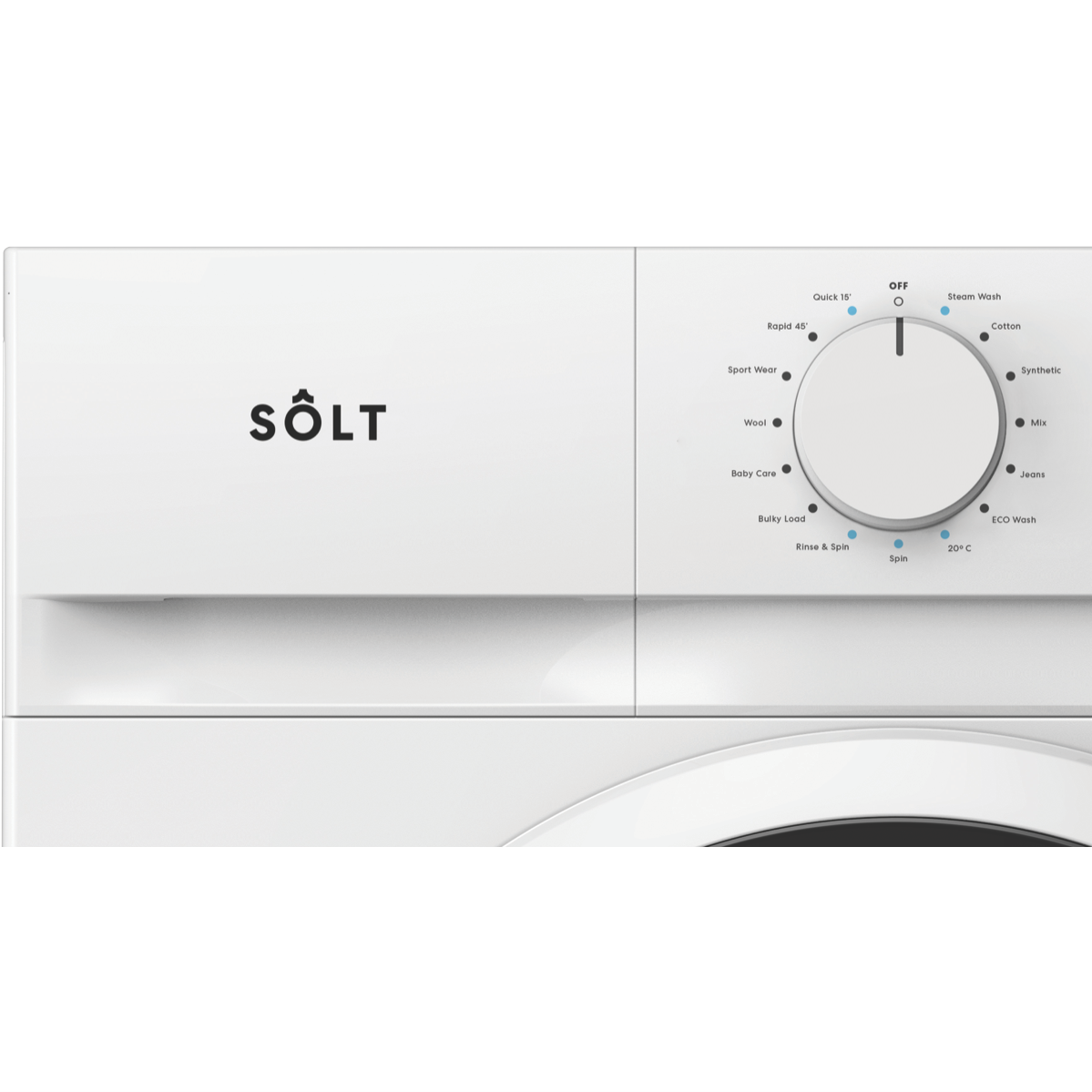 Experience the latest in laundry convenience with the Solt 6kg Front Load Washer. This energy-efficient washing machine packs powerful cleaning performance into a sleek space-saving design. With a generous 6kg capacity 15 programs and multiple wash settings this washer can handle everything from lightly soiled clothes to heavily soiled linens. The 1200rpm max spin speed means less drying time while the steam wash function helps remove tough stains. An Eco Wash program provides an environmentally friendly cycle using less water and energy. At 4 stars for both energy and water this washer helps you save on utilities. The white finish and stainless steel drum offer a clean modern look. Adjustable feet allow you to level the machine on any flooring. With smart features like delay start speed wash child lock and dosing options operation is a breeze. The intuitive control panel also makes it simple to customize each load. From rapid 15-minute cycles to a gentle wool wash this versatile appliance adapts to handle any fabric type. The manufacturer's part number for this product is GGSFLW600. Bring exceptional cleaning power and efficiency home with the Solt 6kg Front Load Washer today.