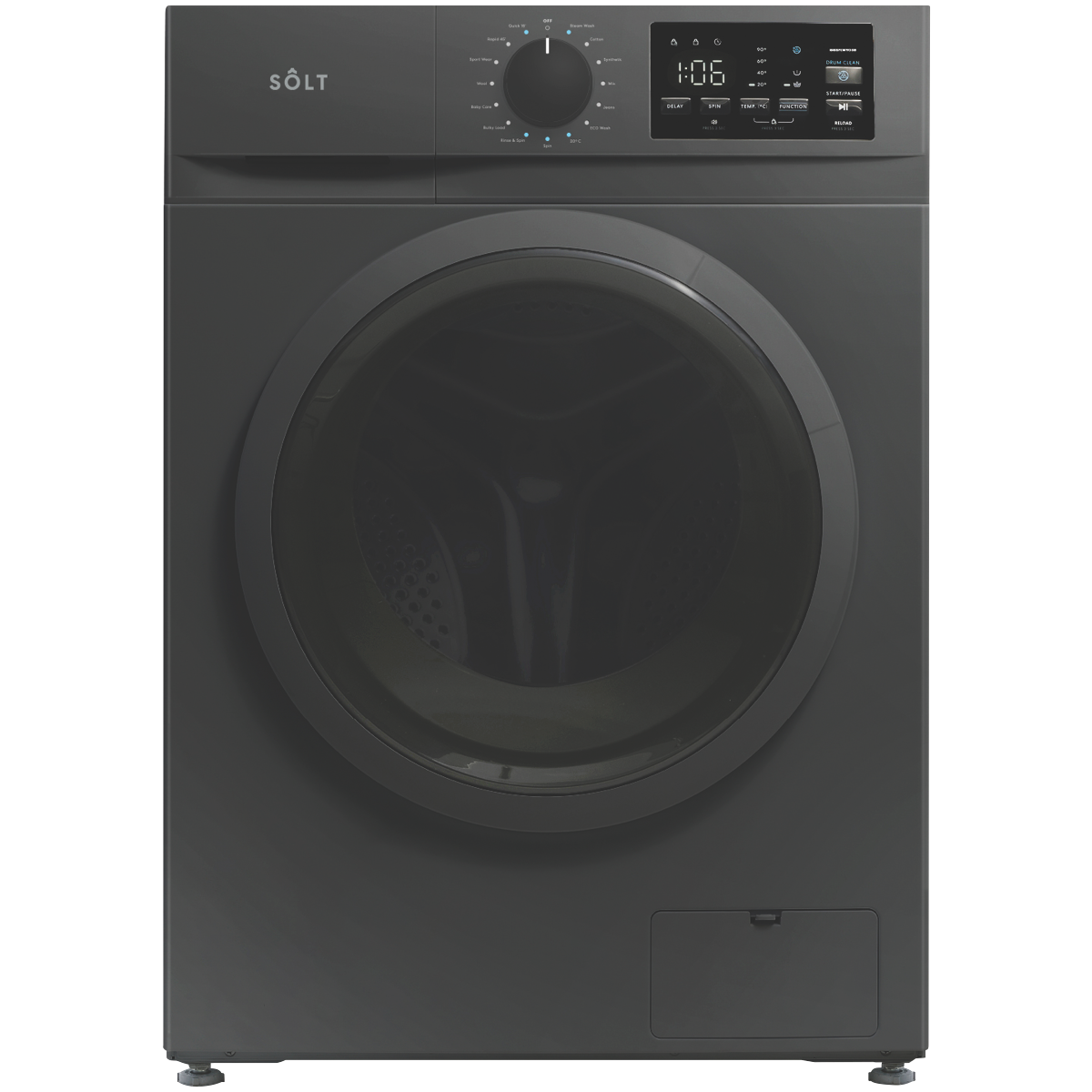 Tackle laundry day with ease thanks to the powerful Solt 9kg front load washing machine. With a spacious 9kg capacity this black washing machine handles large loads while saving water and energy. The Eco wash program and 4 star WELS rating limit water usage to an efficient 91 liters per wash. While the 4.5 star energy rating reduces power consumption for lower electricity bills. Choose from 15 versatile programs like Steam Wash to sanitize fabrics Rapid 45 for quick cleans in under an hour and specialized cycles for jeans woolens baby clothes and more. The intuitive LED display and dial controls make operation a breeze. While useful features like delay start extra rinse and child lock provide added convenience. At a fast 1400RPM maximum spin speed this washer removes more water from clothes for shorter drying times. The durable black finish resists marks and scratches. Backed by a 2 year manufacturer's warranty for peace of mind. The manufacturer's part number for this product is GGSFLW900B.