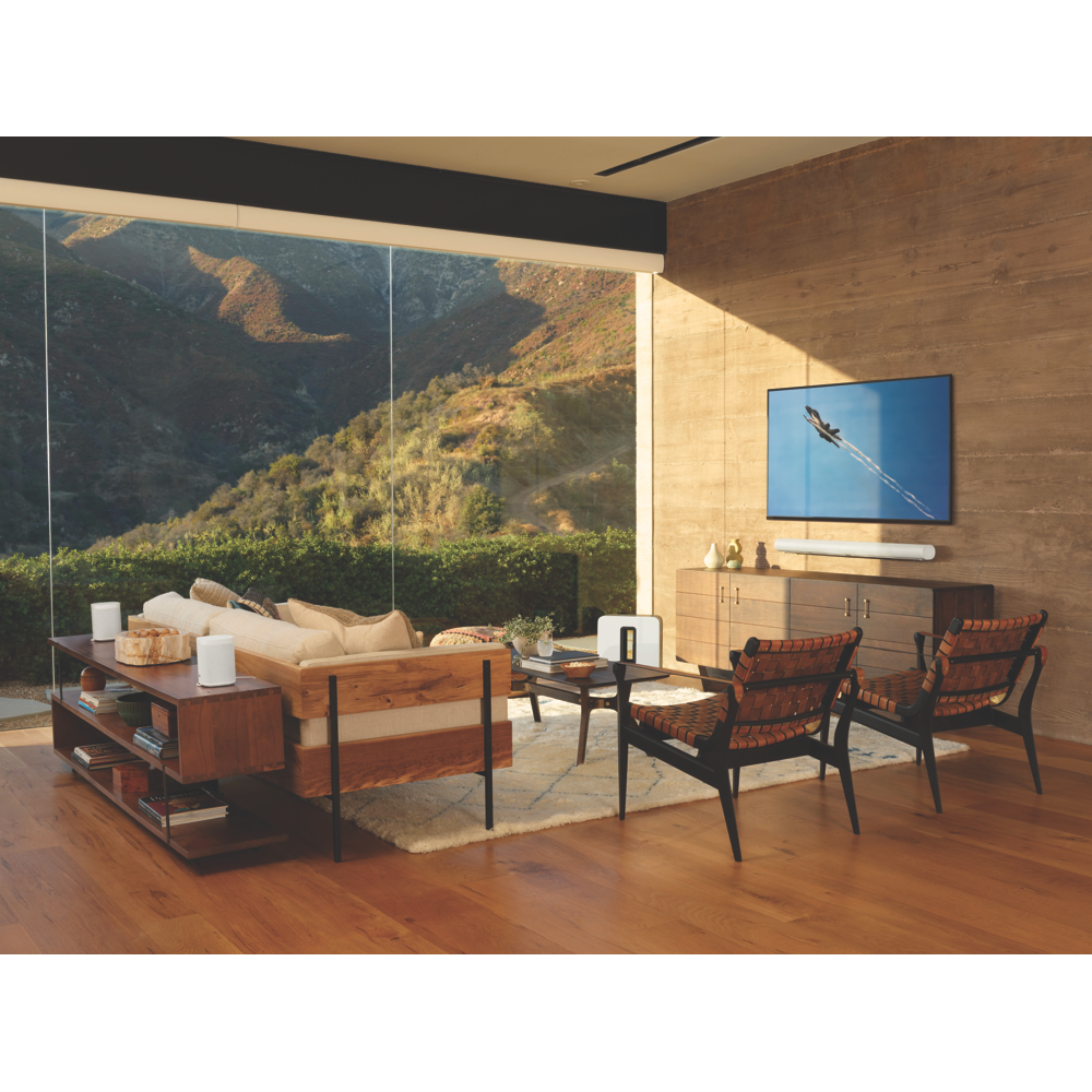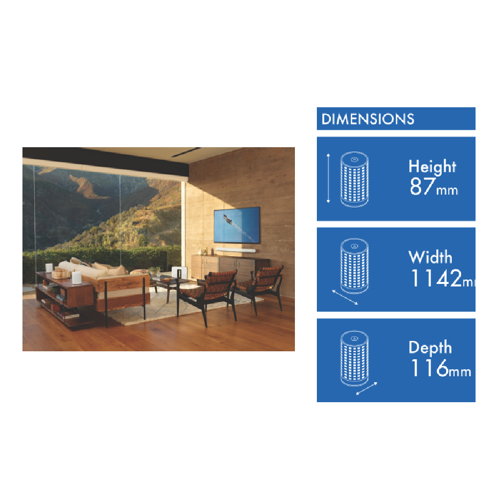 Immerse yourself in the ultimate cinematic sound experience with the Sonos Arc White sound bar. This sleek 11-channel sound bar delivers rich room-filling audio thanks to Sonos' patented acoustic technology. With built-in voice control via Google Assistant and Amazon Alexa you can play music get answers and control your smart home - all hands free. Connect via WiFi and AirPlay 2 to stream all your favorite entertainment. At just 87mm tall it fits perfectly below your wall-mounted TV without blocking the picture. With a 1-year warranty and a manufacturer's part number of ARCG1AU1 the Sonos Arc White sound bar is the perfect audio upgrade for any home theatre. Experience movie magic today.