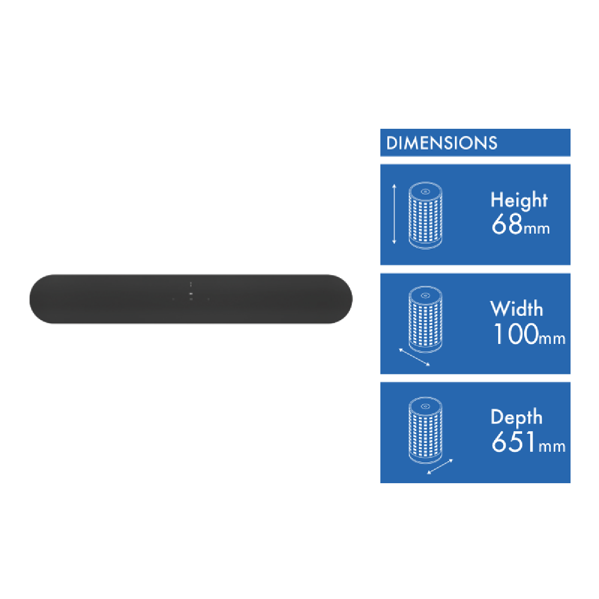 Bring amazing sound and breathtaking audio to the living room using the Sonos Beam Gen 2 Soundbar BEAM2AU1BLK. Whether using it to enhance your beloved shows movies games or sports you will always hear clear voice detail and experience big panoramic sound. When entertaining guests you can play music easily straight from your favourite streaming services. The five class digital amplifiers centre tweeter four elliptical midwoofers and three passi ve radiators all work together to perform crisp and exciting high end and low end frequencies. Producing two dedicated audio paths that offers the true sound experience is the new 40% faster processing chip. Feel immersed into your movies with Dolby Atmos which uses audio algorisms to project sound and effects into the room; feel the roar of the crowd or the crackle of fireworks around you to bring yourself into the experience. Also the soundbar has been perfectly tuned by Oscar-winning sound engineers to ensure vocal clarity and volume is optimal to hear. By just using your voice Amazon Alexa or Google Assistant can help with a variety of tasks including checking the news setting timers or even control other smart home devices. Missing the remote? The Beam soundbar using intuitive touch controls can easily change tracks adjust the volume pause and play your music. Set up is simple using the step-by-step guide and two cable connection you will be playing immersive audio in no time.