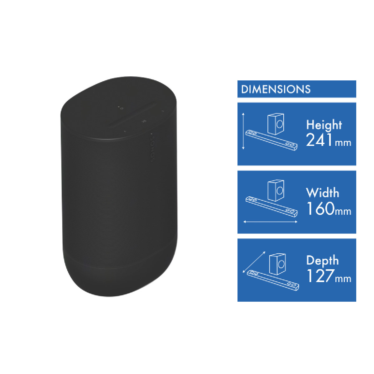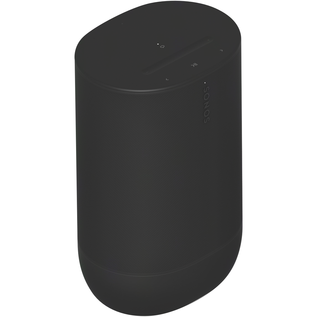 Bring powerful room-filling sound wherever you go with the Sonos Move 2 portable smart speaker. With Wi-Fi and Bluetooth connectivity you can stream all your favorite music radio podcasts and more at home or on the move. Despite its compact size the Sonos Move 2 delivers bold detailed audio thanks to two Class-D amplifiers that pump out 45 watts of pure faithful sound. Automatic Trueplay tuning optimizes the output to match any environment. So whether you're lounging on the patio or kicking back at camp you'll enjoy rich nuanced audio that faithfully reproduces every note. With AirPlay 2 support you can also stream sound seamlessly from Apple devices. And you can control it all easily using the intuitive Sonos app. In black with a durable polycarbonate shell the Sonos Move 2 blends right into any decor. It even has an IP67 rating making it resistant to dust water and moisture. So your tunes can follow you virtually anywhere. When it's time to recharge just set it on the included charging base. Compact yet powerful the Sonos Move 2 gives you great wireless sound wherever life takes you. The manufacturer's part number for this product is MOVE2AU1BLK. Learn more about the capabilities of the Sonos Move 2 smart speaker.