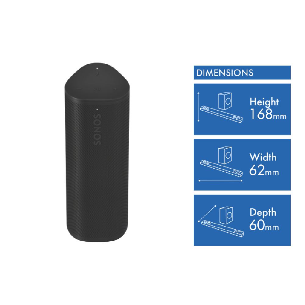 Experience powerful portable sound with the Sonos Roam 2 wireless speaker in sleek black. This compact Bluetooth and WiFi-enabled speaker delivers rich room-filling audio wherever your adventures take you. Enjoy up to 10 hours of continuous playback on a single charge letting you soundtrack your day from morning to night. The durable design ensures the Roam 2 can handle life on the go while the intuitive controls make it easy to adjust volume skip tracks and more. Seamlessly stream your favourite music podcasts and more from popular services like Spotify Apple Music and Audible. The manufacturer's part number for this product is ROAM2R21BLK. Take your audio experience to new heights with the Sonos Roam 2 portable speaker backed by a 1-year manufacturer's warranty.