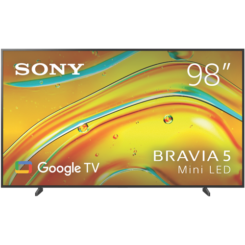 This massive 98 Sony Bravia 5 brings cinema-sized viewing to your home with stunning 4K Mini LED technology. The XR Processor powers everything from upscaling to the XR Triluminos Pro colour system making shows and movies look incredibly lifelike on the QFHD screen. With a 120Hz refresh rate and HDMI VRR compatibility it's ready for serious gaming too. Google TV gives you access to all your favourite streaming apps including Netflix Disney+ and YouTube while voice control works with both Google Assistant and Alexa. The built-in sound system includes full range speakers with bass reflex and tweeters for clear audio though you can pair it with the Bravia Theatre System 6 soundbar for an even better experience. At 69kg without the stand you'll want to make sure your wall can handle it if mounting. Includes a 1-year warranty. Model K98XR50.