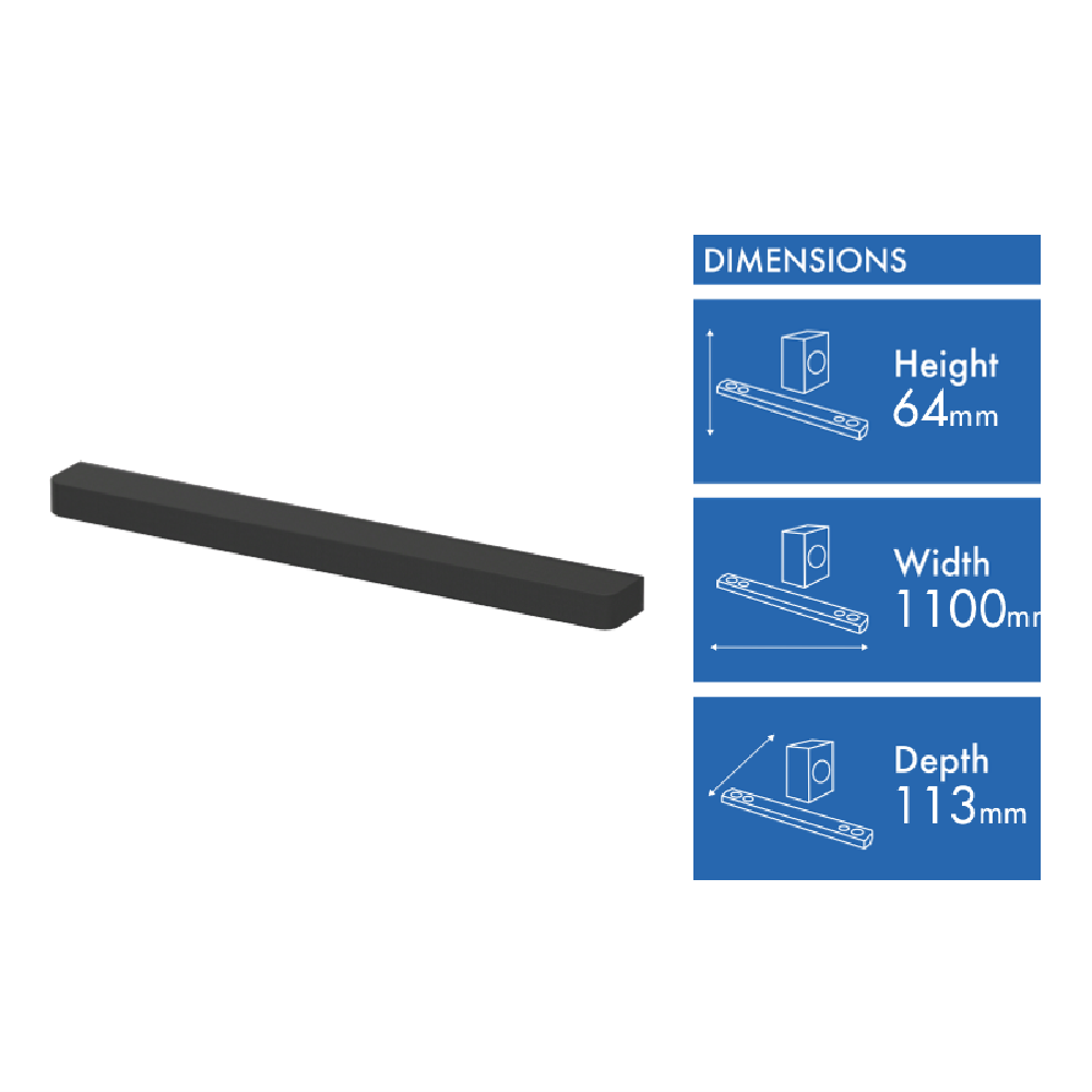 Bring cinematic sound home with the Sony Bravia Bar 8 HTA8000 sound bar. With 5.0.2 channels and 60W total output you'll get an immersive audio experience that fills the room. Stream your favorite tunes via Bluetooth Spotify Connect or AirPlay thanks to built-in Wi-Fi and Bluetooth 5.2. The sleek black design fits seamlessly under your TV measuring 1100mm wide 64mm high and 113mm deep. Mounting is a breeze with the included wall bracket and template. Plus you get a 1-year manufacturer's warranty for peace of mind. Part number HTA8000.