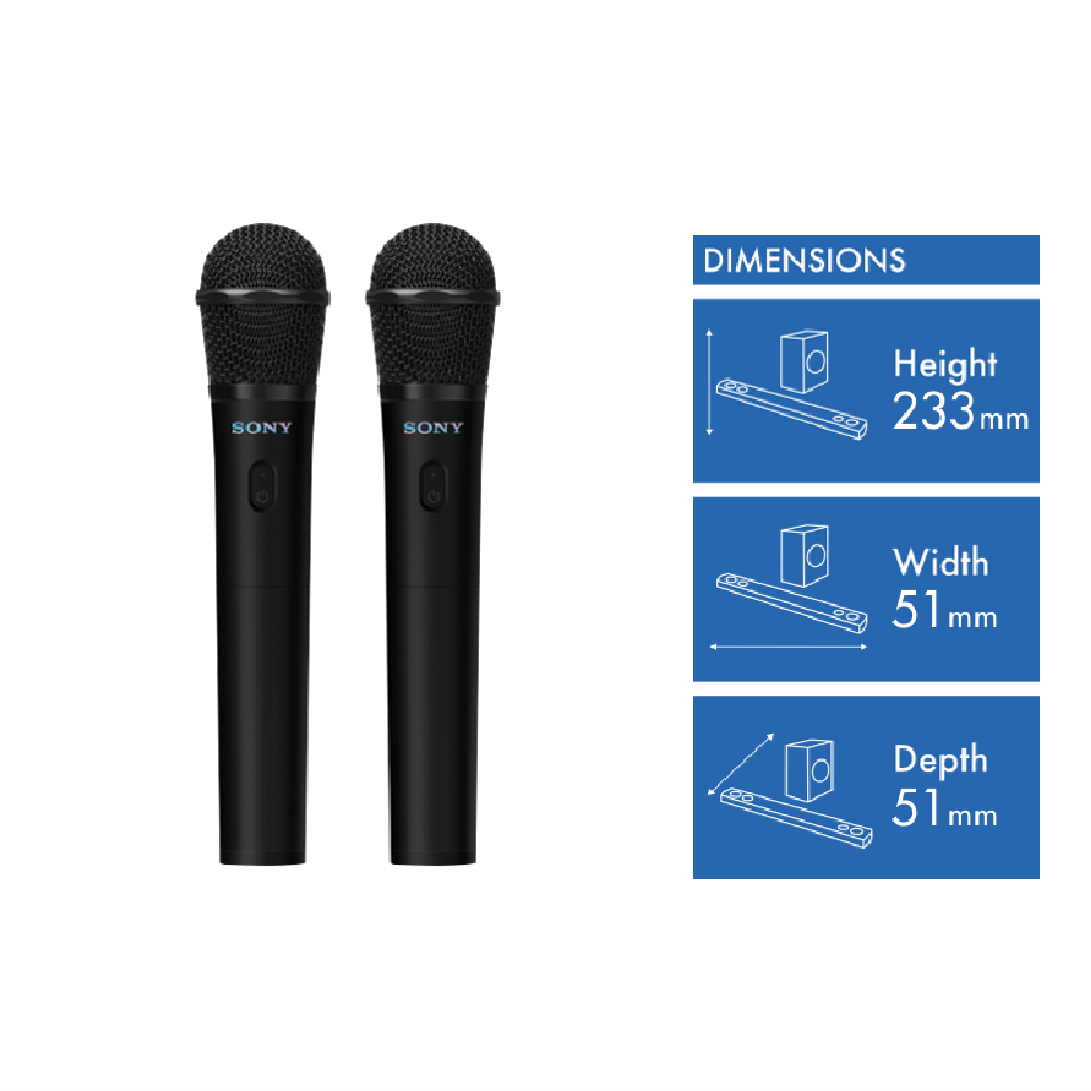 Designed as the perfect match for Sony ULT POWER SOUND series speakers and optimised for a clear vocal sound this pair of wireless microphones will let you and a friend take centre stage and sound great The ULTMIC1 incorporates a microphone optimised for bright and natural vocal pickup ensuring your singing feels effortless and your harmonies smoother than ever.