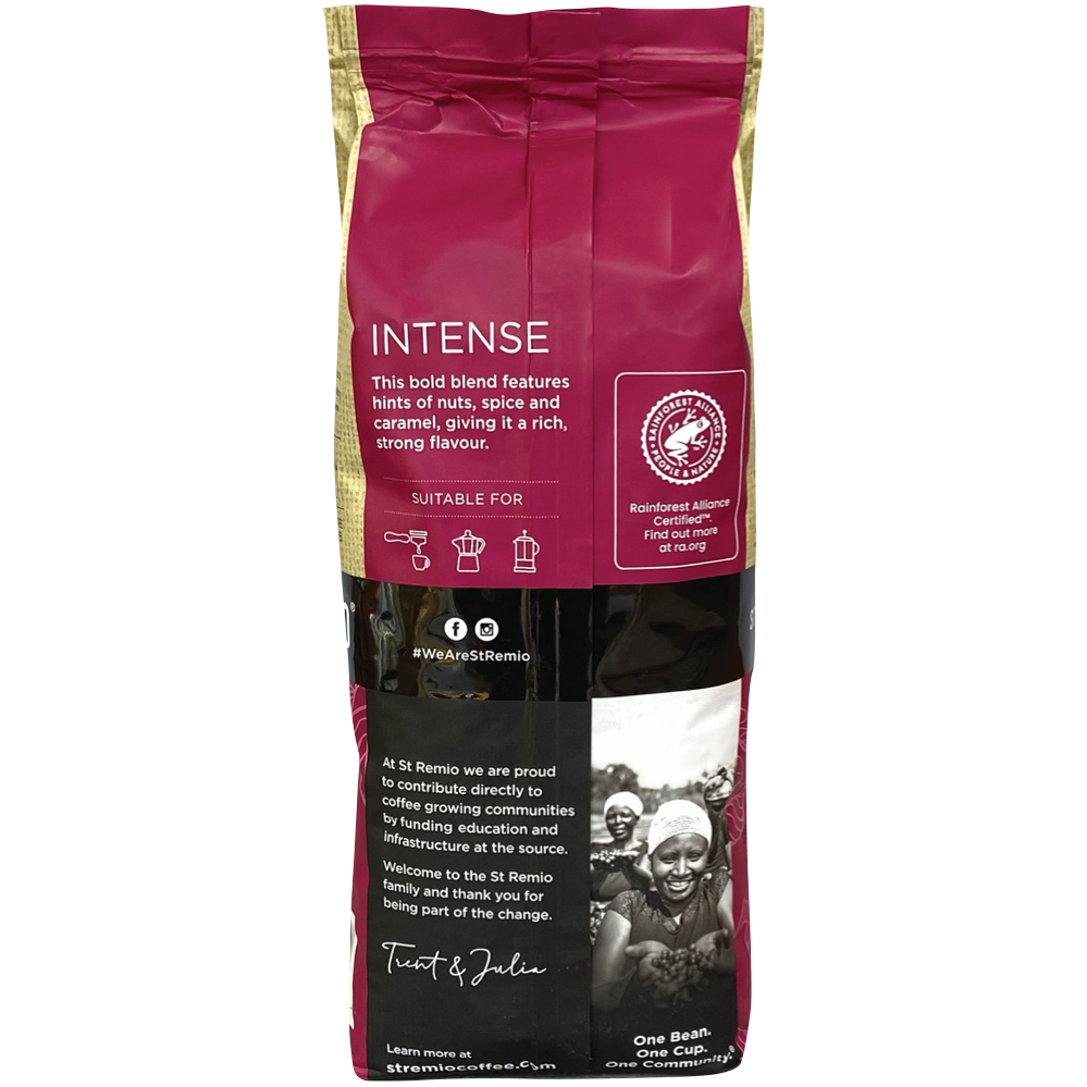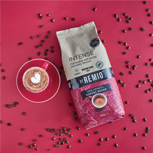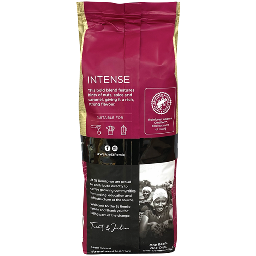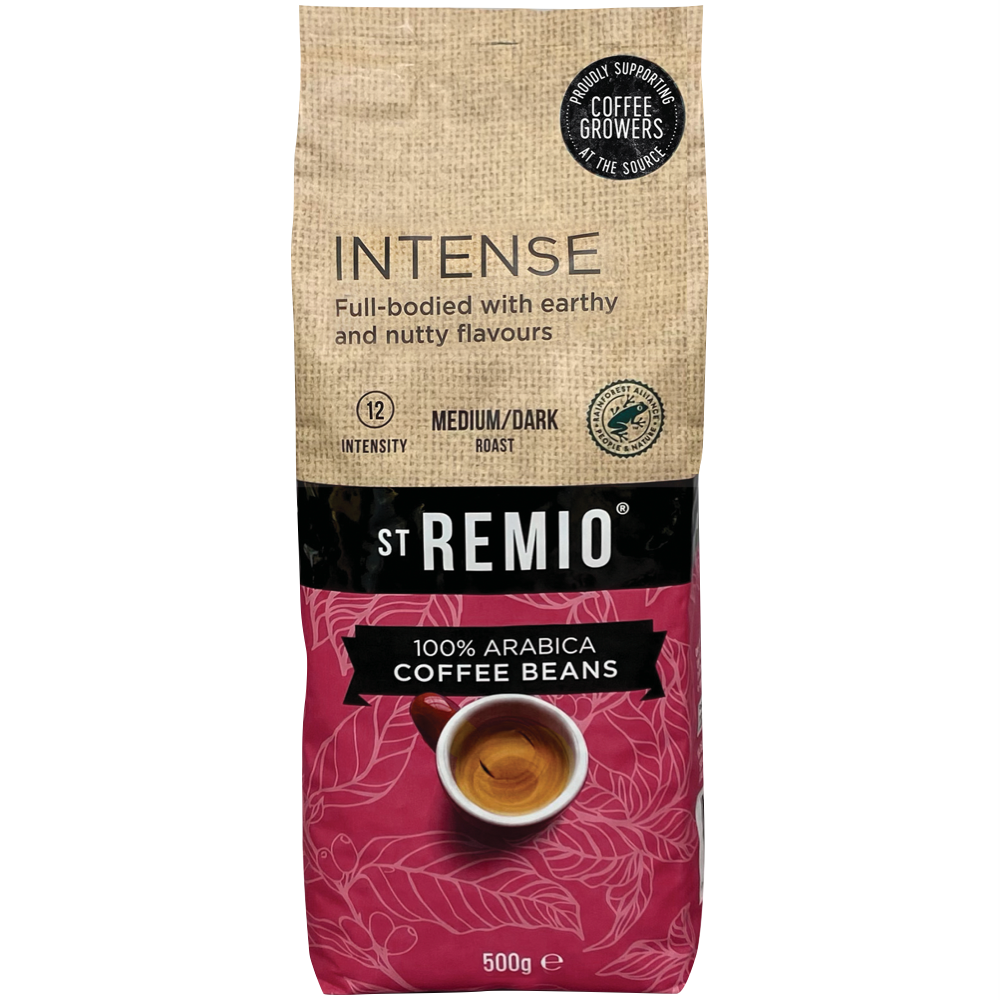 Make your morning coffee an intense experience with the St Remio Coffee Intense Blend Beans. These 500g coffee beans deliver a bold rich flavour that will awaken your senses. The Arabica beans are specially roasted to draw out the full complex notes and aromas. Grind them fresh each morning and brew up a cup that's strong yet smooth. Whether you enjoy a short black cappuccino or latte these beans make a perfect base. Their intense flavour profile shines through any style of coffee drink. Bring out the barista in your own kitchen. The St Remio Intense Blend is crafted for coffee lovers who want a little extra punch to start their day. Brewing with these beans is a ritual that will make you eager to get out of bed each morning. Experience the intensity today - these beans are waiting to be ground brewed and enjoyed.SRCBINT500G is the manufacturer's part number for this product.Treat your tastebuds to the bold St Remio Intense Blend Beans today.