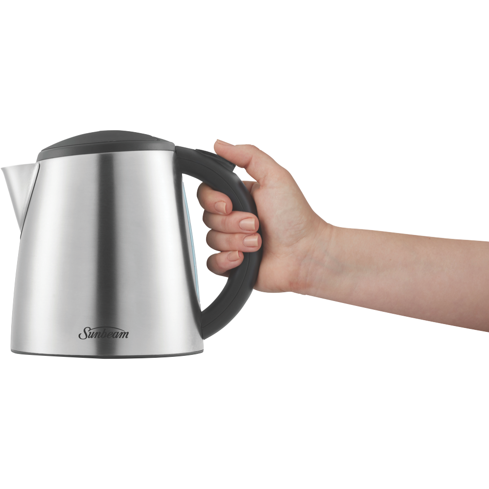 This Sunbeam Bella Aqua Stainless Steel Kettle KE7110 is a compact electric kettle with a one litre capacity and a 1800 watt heating element. This small kettle is ideal for small spaces and single person households. A simple on/off switch on the handle allows for easy operation while base cord storage will help keep your countertop clear. The stainless steel construction and finish will make this compact Sunbeam kettle a sophisticated addition to any contemporary kitchen.