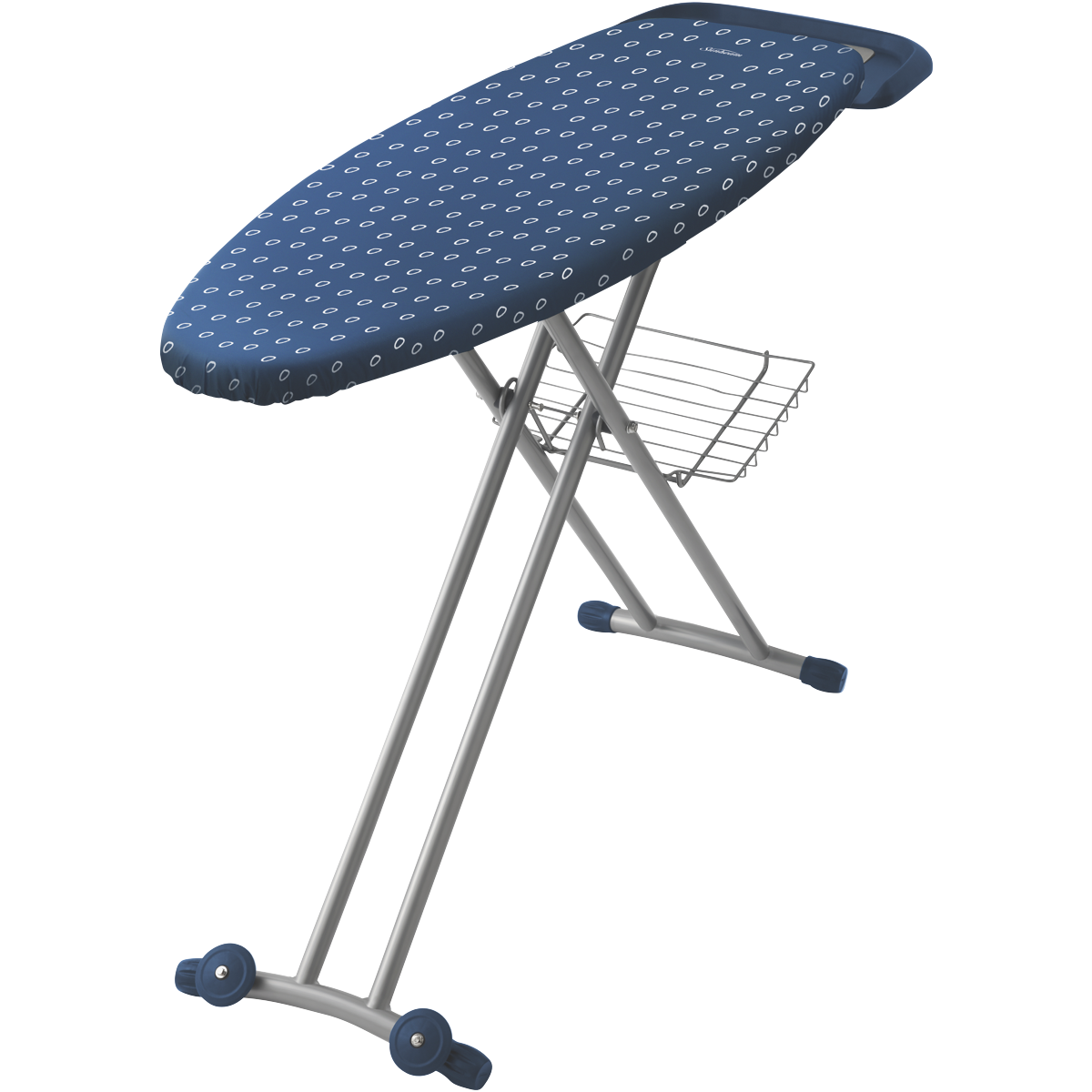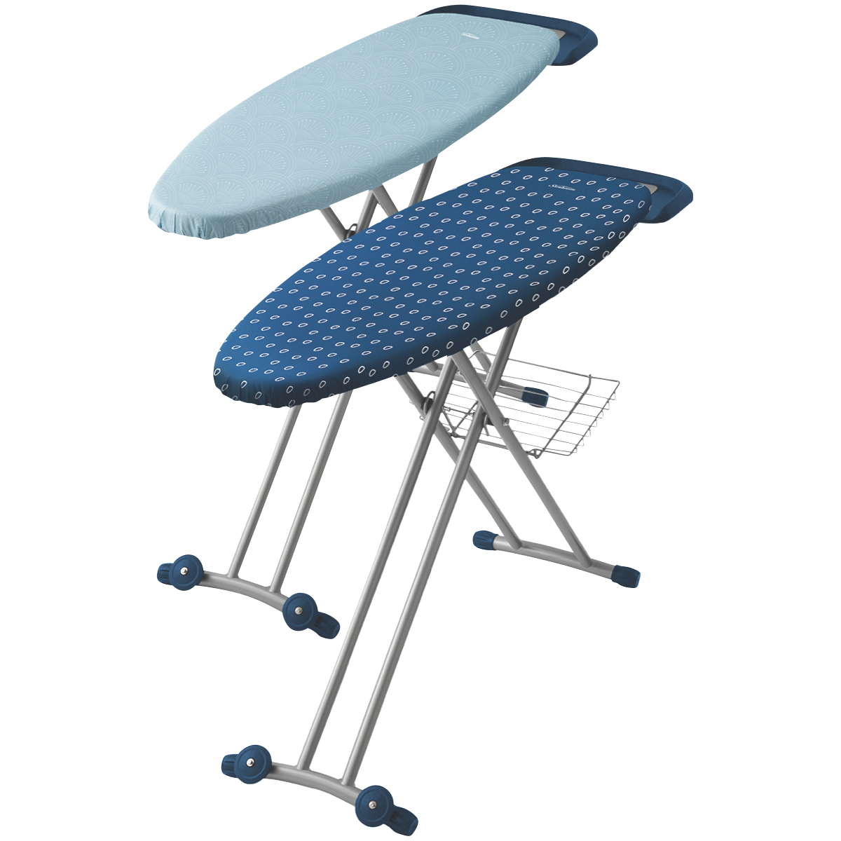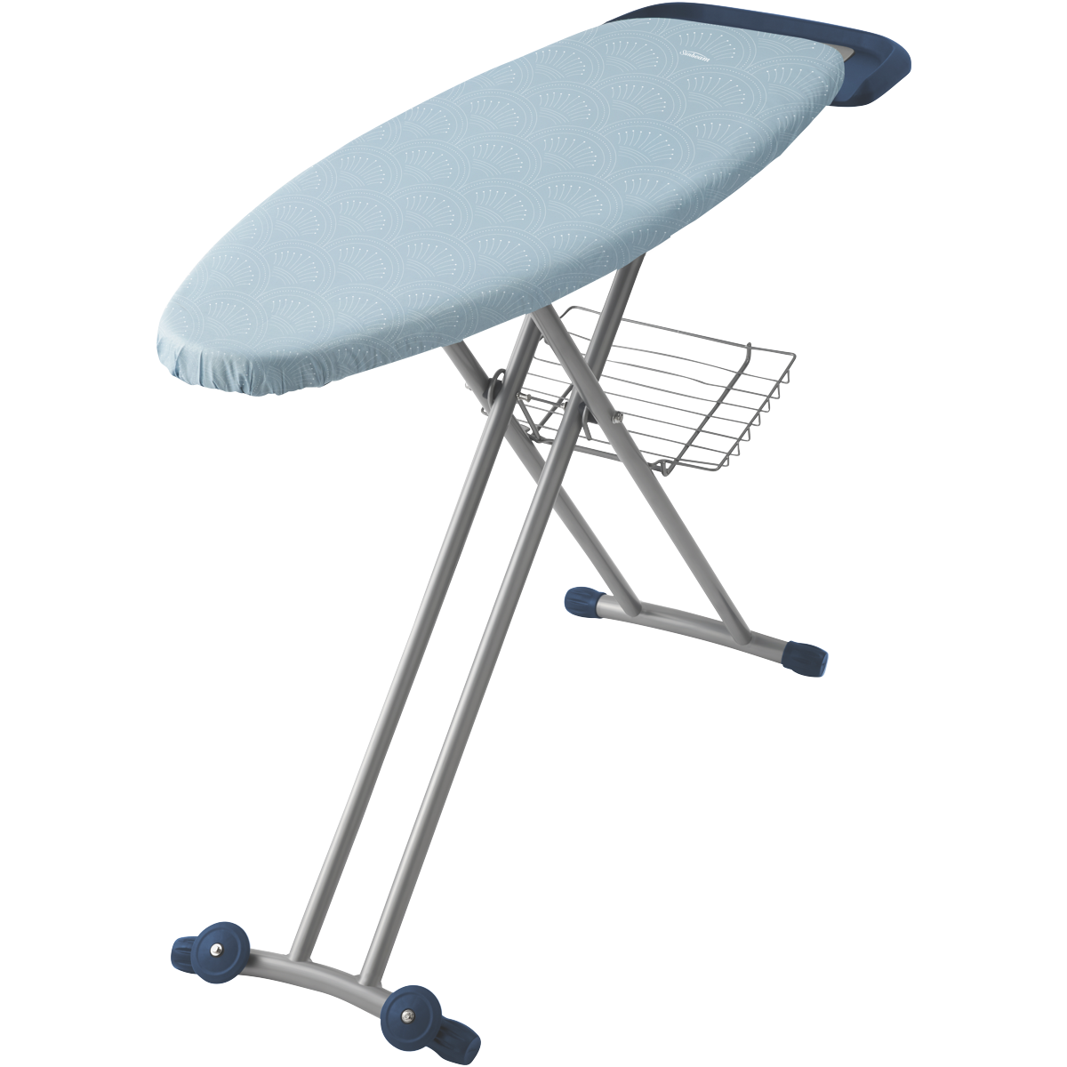 Make ironing a breeze with the Sunbeam Chic Ironing Board. This lightweight yet sturdy ironing board features a 135 x 45cm blue heat resistant iron rest for smooth gliding. The easy release levers allow you to set up this ironing board in seconds while the built-in wheels provide easy mobility around the house. With the retractable iron rest you can safely store your hot iron when not in use. The chic blue color and sleek design blends seamlessly into any home décor. Experience hassle-free ironing with the 5 year warranty for peace of mind. The manufacturer's part number for this product is SB7400. Check out this quality ironing board for your home today.