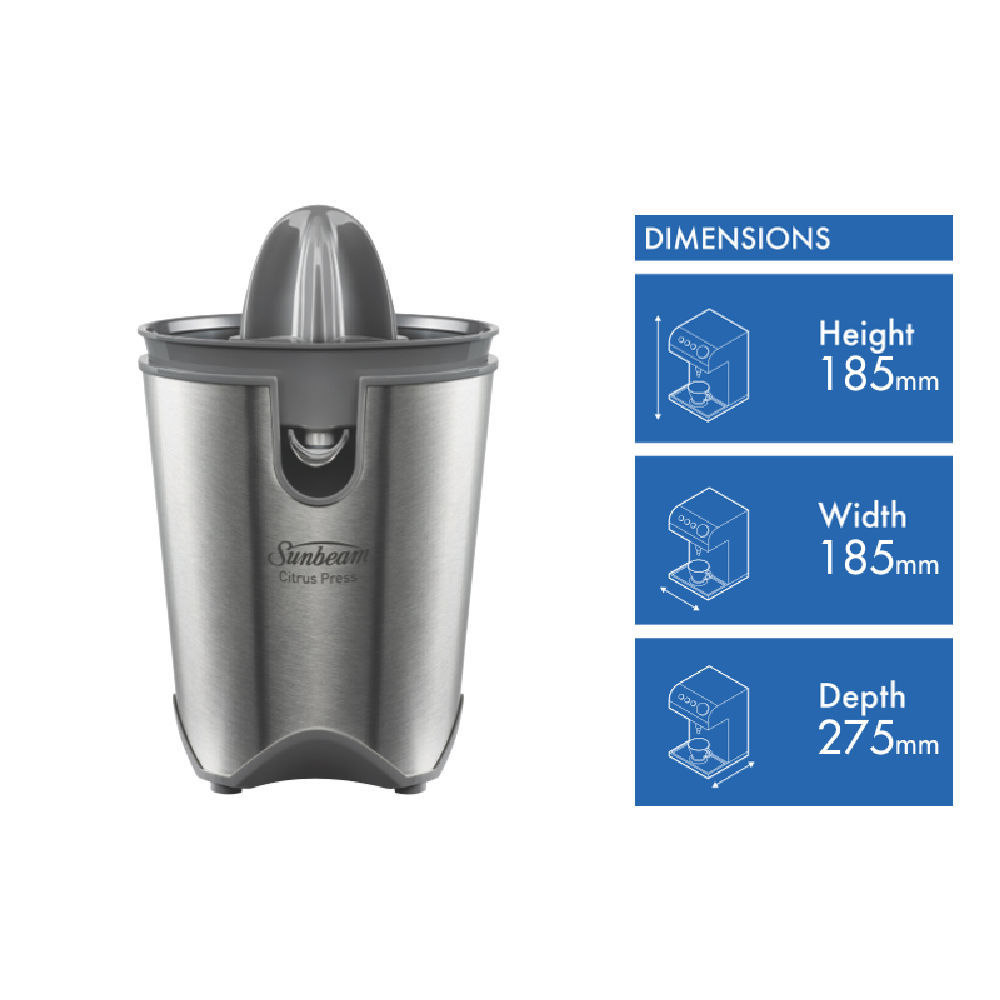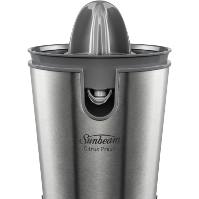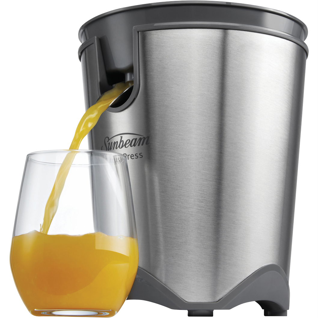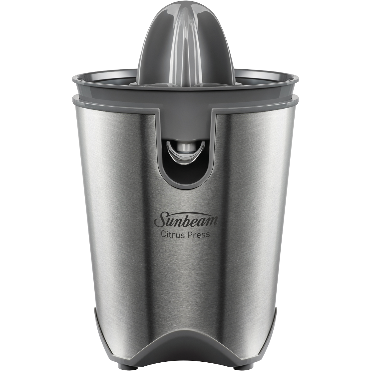 Discover the ease of juicing fresh citrus fruits with the Sunbeam Citruspress Juicer. This stainless steel juicer features a powerful 85W motor and wide feed chute to quickly juice oranges grapefruits lemons and limes. The anti-drip sprout ensures minimal mess while the auto-operation and two cone sizes - small for lemons and limes and large for oranges and grapefruits - make juicing effortless. With a sleek and compact design this juicer's stainless steel construction provides durability while the included dust cover keeps the appliance clean when not in use. Experience the convenience of fresh citrus juice whenever you want with the Sunbeam Citruspress. The manufacturer's part number for this product is JEM1000SS. Add this citrus juicer to your cart today for easy home juicing.