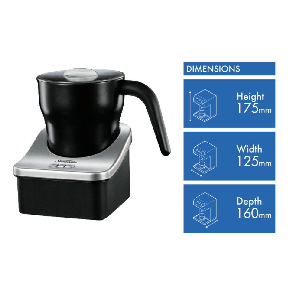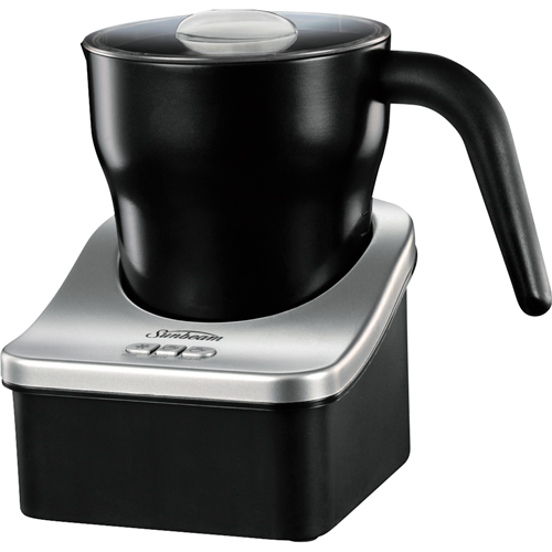 Take your morning coffee to the next level with the Sunbeam Milk Frother. This easy-to-use milk frother lets you create barista-quality coffee drinks right at home. With just a push of a button you can transform milk into a light creamy foam topping for cappuccinos lattes and more. The stainless steel jug heats and froths milk quickly and evenly for perfectly frothed milk every time. Whether you like your coffee black or prefer a frothy cappuccino this milk frother has you covered. The compact size and sleek design make it easy to store and looks great on any countertop. Make café-style coffee drinks a part of your daily routine with the simple yet powerful Sunbeam Milk Frother. The manufacturer's part number for this product is EM0180. Check out this milk frother to elevate your at-home coffee experience today.
