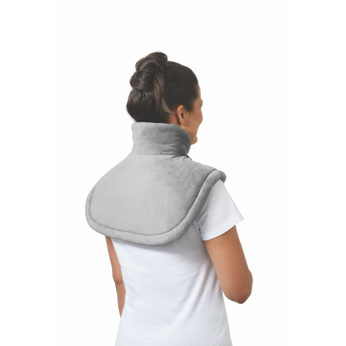 Soothe neck and shoulder tension fast with the Sunbeam Neck and Shoulder Heating Pad. This grey heating pad features built-in Intellisense Technology that allows it to heat up in just 90 seconds along with 5 customizable heat settings to find your ideal level of soothing warmth. The soft polyester fabric sleeves gently wrap around your neck and shoulders to relax muscles and relieve pain. With auto shut-off after 3 hours of continuous use you can relax knowing this heating pad will turn off on its own. The easy-to-use controller makes it simple to find the perfect temperature. And when you're done just detach the machine washable pad sleeves and throw them in the laundry. Sunbeam designed this heating pad to be ready in minutes comfortable to wear and easy to maintain. So treat yourself to some relaxation and pain relief with the Sunbeam Neck and Shoulder Heating Pad. The manufacturer's part number for this product is HPN5300.