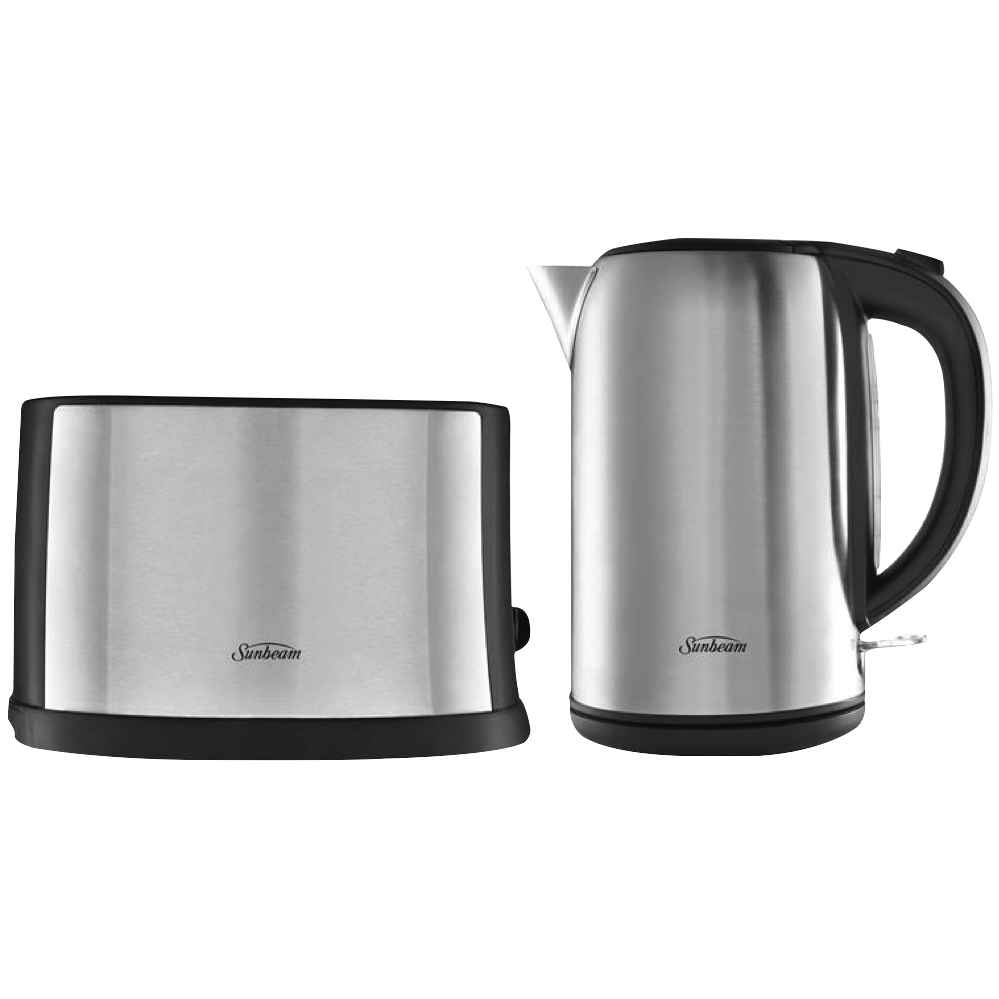 You have everything you need to create a quick easy breakfast with this Sunbeam PU5201 Toaster & Kettle Breakfast Pack. Pop in 2 slices of toast and adjust the browning settings from 1 to 7 for the perfect level of golden brown bread - before slathering on lashings of butter or vegemite. There's no problem if you've only got frozen bread - just hit the defrost button and let the toaster do the rest Plus there's also a reheat button if you get distracted and forget to butter your toast in time. While your breakfast is toasting pop the kettle on. The included kettle in this Sunbeam Breakfast Essentials Pack PU5201 has a 1.7-litre capacity so you can boil up to 7 cups of water at once and with a fast boil concealed heating element you'll be enjoying a cup of tea or coffee in no time. Both kettle and toaster in the PU5201 Breakfast Essentials Pack have a stainless steel finish so not only do they match but they're a great addition to any kitchen Prepare a simple breakfast in just minutes with help from the Sunbeam Breakfast Essentials Pack.