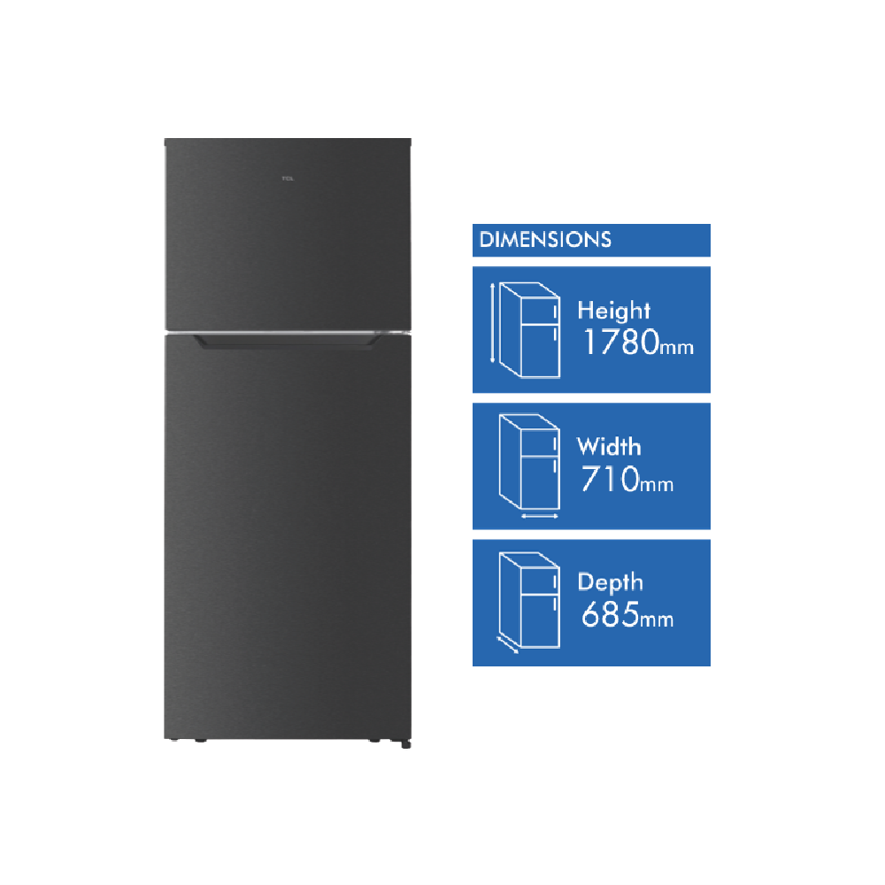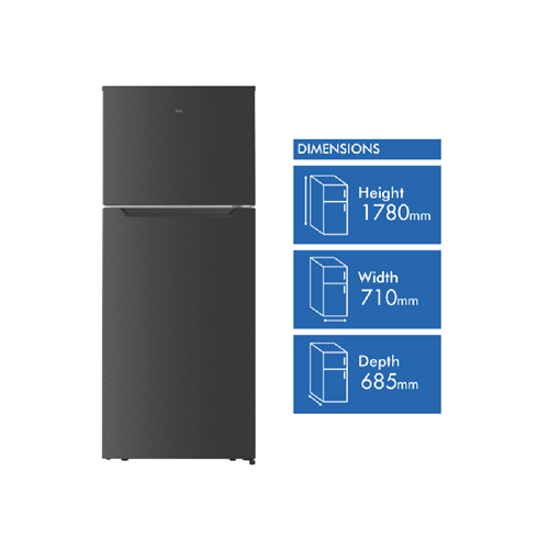 Bring a touch of style and convenience to your kitchen with the sleek black TCL 415L Top Mount Refrigerator. This spacious fridge boasts a generous 415L total capacity including a roomy 321L refrigerator compartment and a 94L freezer making it ideal for families. The right hand hinged door opens to reveal adjustable glass shelves door shelves a humidity controlled crisper and an egg tray - everything you need to store fresh ingredients. With its energy efficient 4 star rating this fridge aims to save you money while keeping your food fresher for longer. Reversible doors add flexibility while the adjustable legs allow you to level it on any surface. The manufacturer's part number for this product is P454TMB. Discover how the TCL 415L Top Mount Refrigerator can upgrade your kitchen.