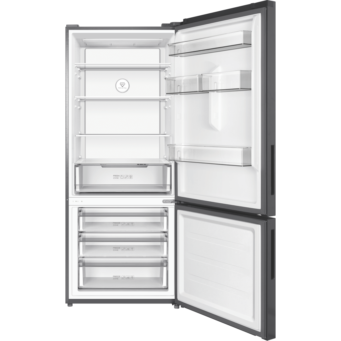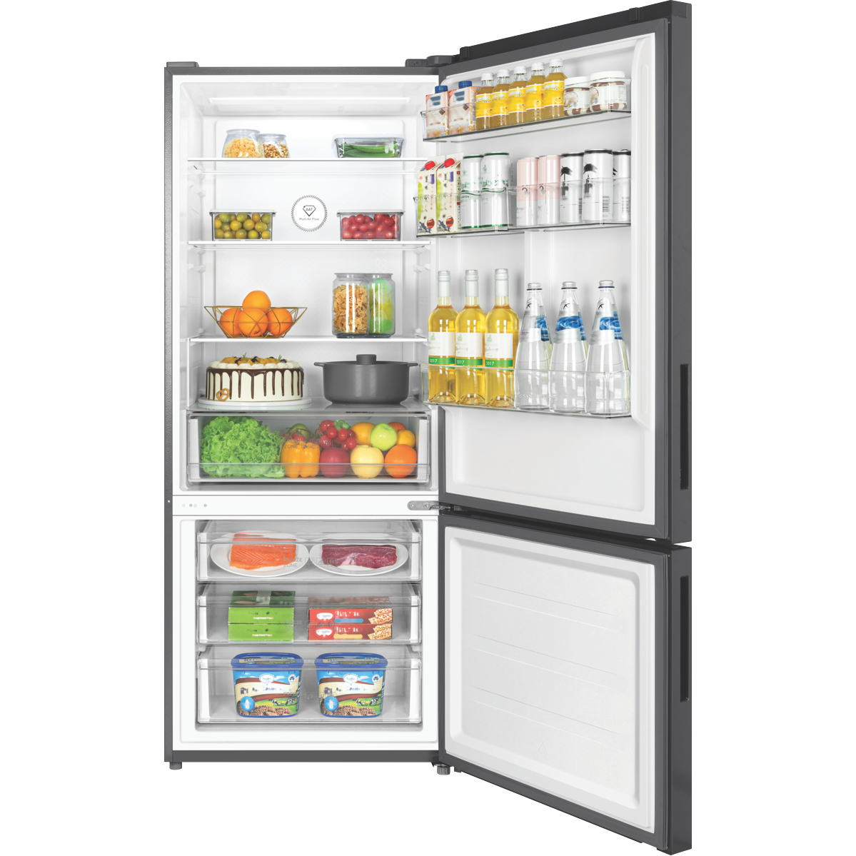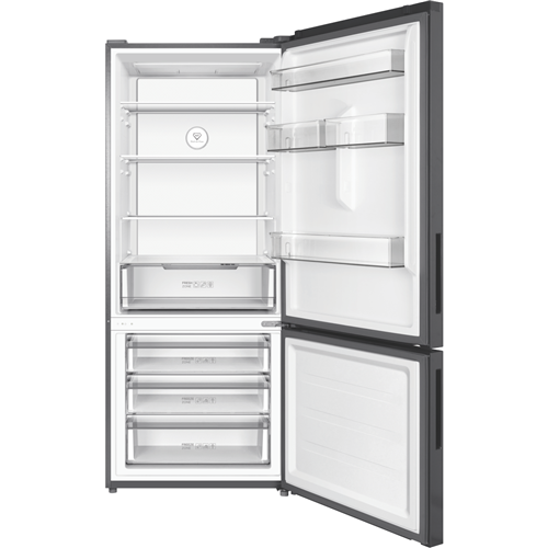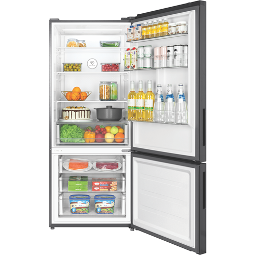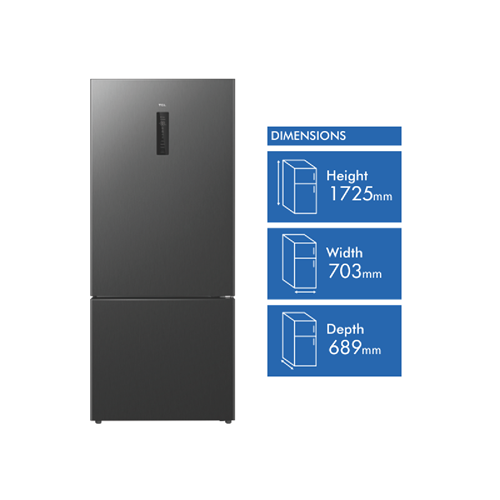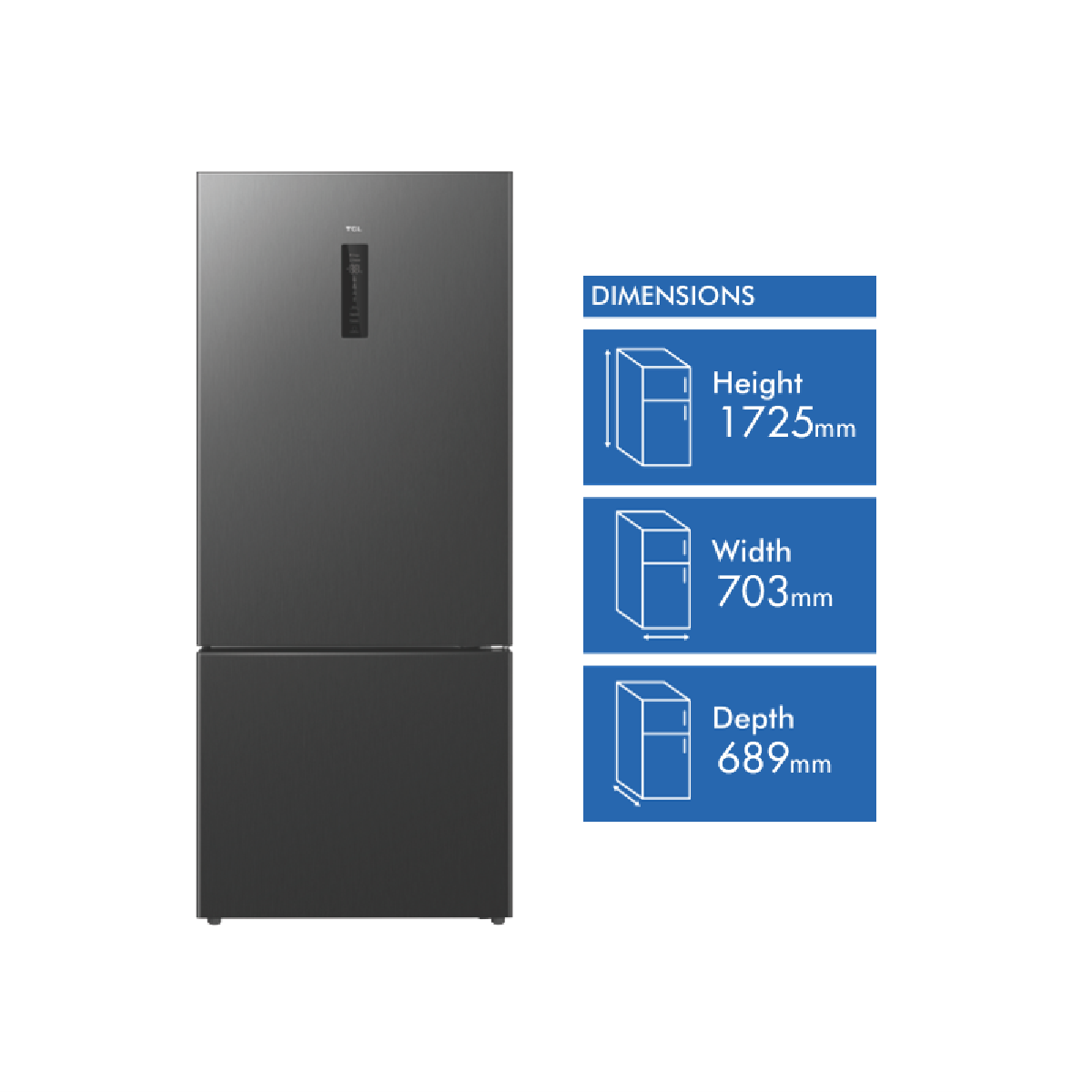 Bring style and convenience to your kitchen with the sleek TCL 416L Bottom Mount Refrigerator. This spacious bottom freezer fridge offers generous 310 litre capacity in the fridge compartment and 106 litres in the freezer providing ample chilled storage for the weekly shop. The stylish matte black finish and reversible right hand hinged door will complement any modern decor. Loaded with handy features like multi airflow cooling adjustable glass shelves crisper drawer interior LED lighting and child lock this refrigerator aims to make life easier. The inverter compressor allows precise temperature control while optimising energy efficiency. Rated an impressive 5 stars for energy this fridge aims to cut electricity bills and environmental impact. Frost free technology prevents icy buildup so you don't have to manually defrost. With its black matte finish generous storage capacity energy efficiency and convenient features TCL's bottom mount fridge is designed to deliver exceptional cooling performance and seamless integration into your home. The manufacturer's part number for this product is P445BFB. Check out this refrigerator to keep food fresher for longer.