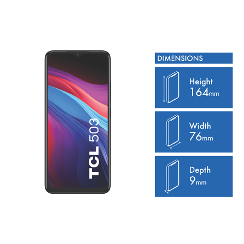 Check out the TCL 503 4G 64GB Space Gray phone. This sleek device rocks a 6.6 HD+ display that's perfect for streaming your fave shows. Snap pics with the 8MP rear camera or take selfies with the 5MP front cam. You'll have plenty of room for all your apps and media with 64GB storage and 3GB RAM. And get this it's got a massive 5000mAh battery to keep you connected all day long. The TCL 503 comes with Android 14 dual SIM support and handy accessories like a charger USB cable and case. Part number 90061185. Plus enjoy peace of mind with a 2-year warranty from TCL.