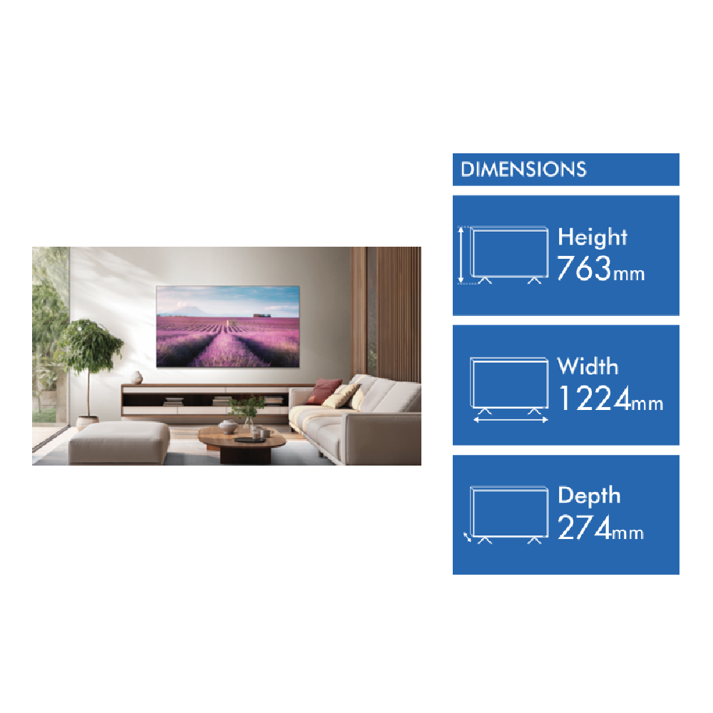 This 55-inch QLED TV brings your entertainment to life with vibrant 4K Ultra HD resolution and Quantum Dot technology for more realistic colours. The Google TV platform makes it easy to find your favourite shows while the 60Hz refresh rate keeps fast-moving scenes looking smooth. You'll enjoy immersive sound from the 2.0 channel speakers with Dolby Atmos support and connecting devices is simple with three HDMI ports and USB connectivity. It even supports hands-free voice control with Amazon Alexa built-in. Comes with a 3-year warranty. Model 55P7K.