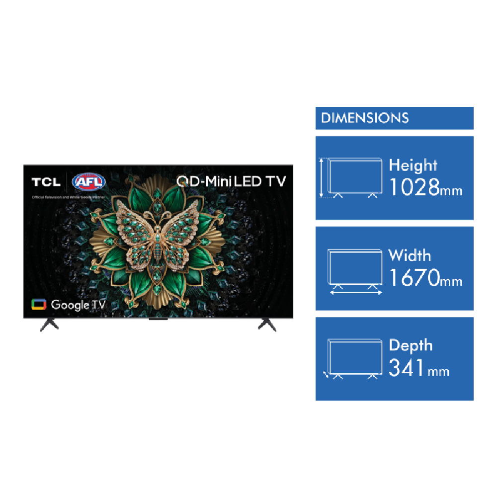 This TCL 75 C6K QD Mini LED Google TV brings the cinema to your living room. With its massive 75-inch screen and QD-Mini LED technology you'll see colors pop and details shine like never before. The AiPQ Pro Processor makes sure everything looks crisp and smooth even during fast-paced action. And with a 120Hz refresh rate that can go up to 144Hz for gaming you won't miss a beat. The Onkyo sound system with Dolby Atmos surrounds you in rich audio. Google TV gives you easy access to all your favorite streaming apps and you can control it all with just your voice. Plus with a 5-star energy rating you can enjoy top-notch entertainment without worrying about your power bill. This TV is perfect for movie nights gaming sessions or just kicking back to watch your favorite shows. The TCL 75C6K is a feature-packed TV that'll upgrade your viewing experience. It comes with a 3-year warranty for peace of mind.