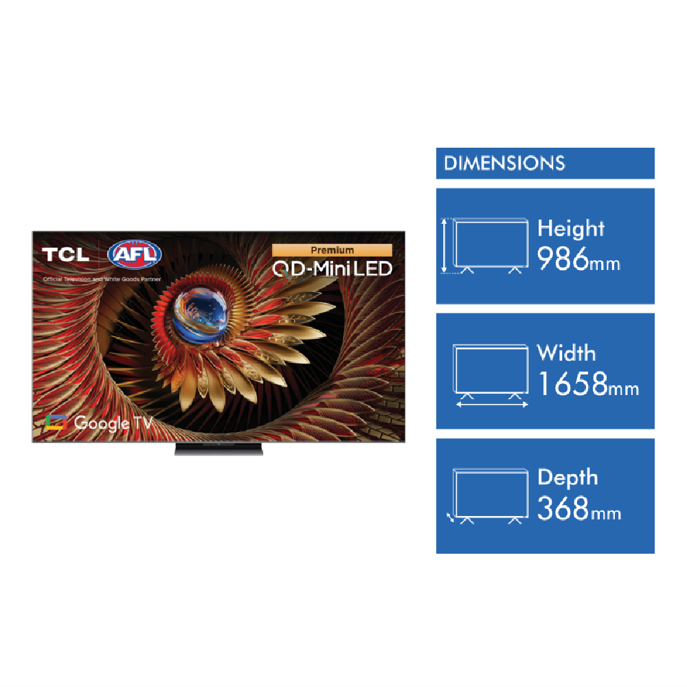 This impressive 75 Mini LED TV delivers stunning 4K Ultra HD resolution with a remarkable 288Hz refresh rate perfect for enjoying crystal-clear action scenes. The Quantum Dot Technology works with the AiPQ Pro processor to produce vibrant accurate colours across a wide spectrum. Gamers will appreciate the Freesync Premium Pro compatibility while the Google TV operating system makes finding your favourite content simple and intuitive. With Dolby Vision IQ and Atmos support you'll enjoy cinema-quality picture and 90W sound in your living room. Comes with a 3-year warranty. Model 75C8K.