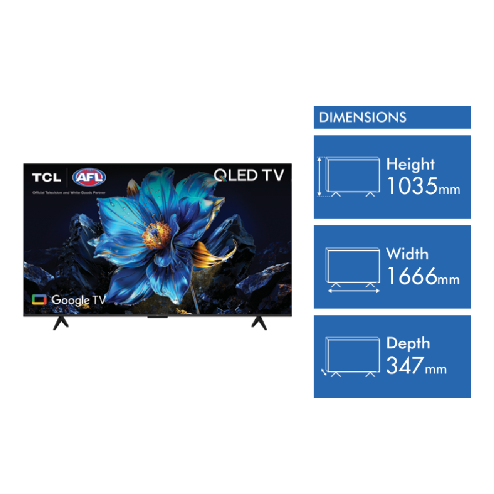 This massive TCL 75-inch QLED TV brings your entertainment to life with stunning 4K Ultra HD resolution and vibrant Quantum Dot technology for rich accurate colors. The Google TV platform makes streaming your favorite shows simple while the 60Hz refresh rate keeps fast-moving scenes looking smooth. For gamers it's ready to play with HDMI 2.1 ports and a responsive 6.5ms response time. Enjoy immersive sound from the built-in 2.0 channel speakers with Dolby Atmos support. Comes with a 3-year warranty. Model 75P7K.