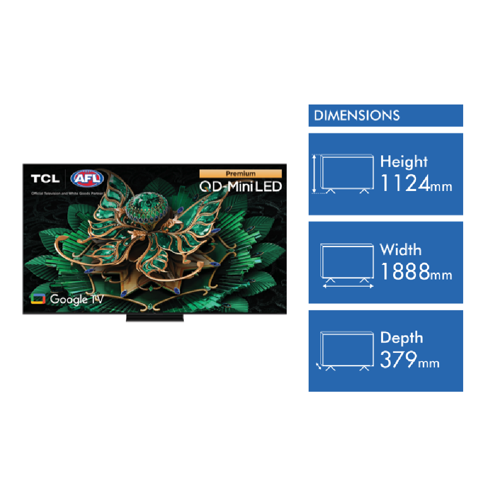 Experience cinema-quality visuals at home with this massive 85-inch TCL TV. The QD-Mini LED screen delivers stunning Ultra HD resolution and vibrant colours thanks to Quantum Dot technology. You'll enjoy incredibly bright and detailed images with a peak brightness of 3000 nits and support for multiple HDR formats including Dolby Vision IQ. Gamers will love the 120Hz refresh rate and FreeSync Premium Pro for smooth tear-free gameplay. The powerful 60W audio system tuned by Bang & Olufsen provides immersive sound to match the impressive picture. Google TV gives you easy access to all your favourite streaming apps and content. With its ultra-slim design and premium features this TCL C7K series TV brings the movie theatre experience right to your living room. The 85C7K model comes with a 3-year manufacturer's warranty for peace of mind.