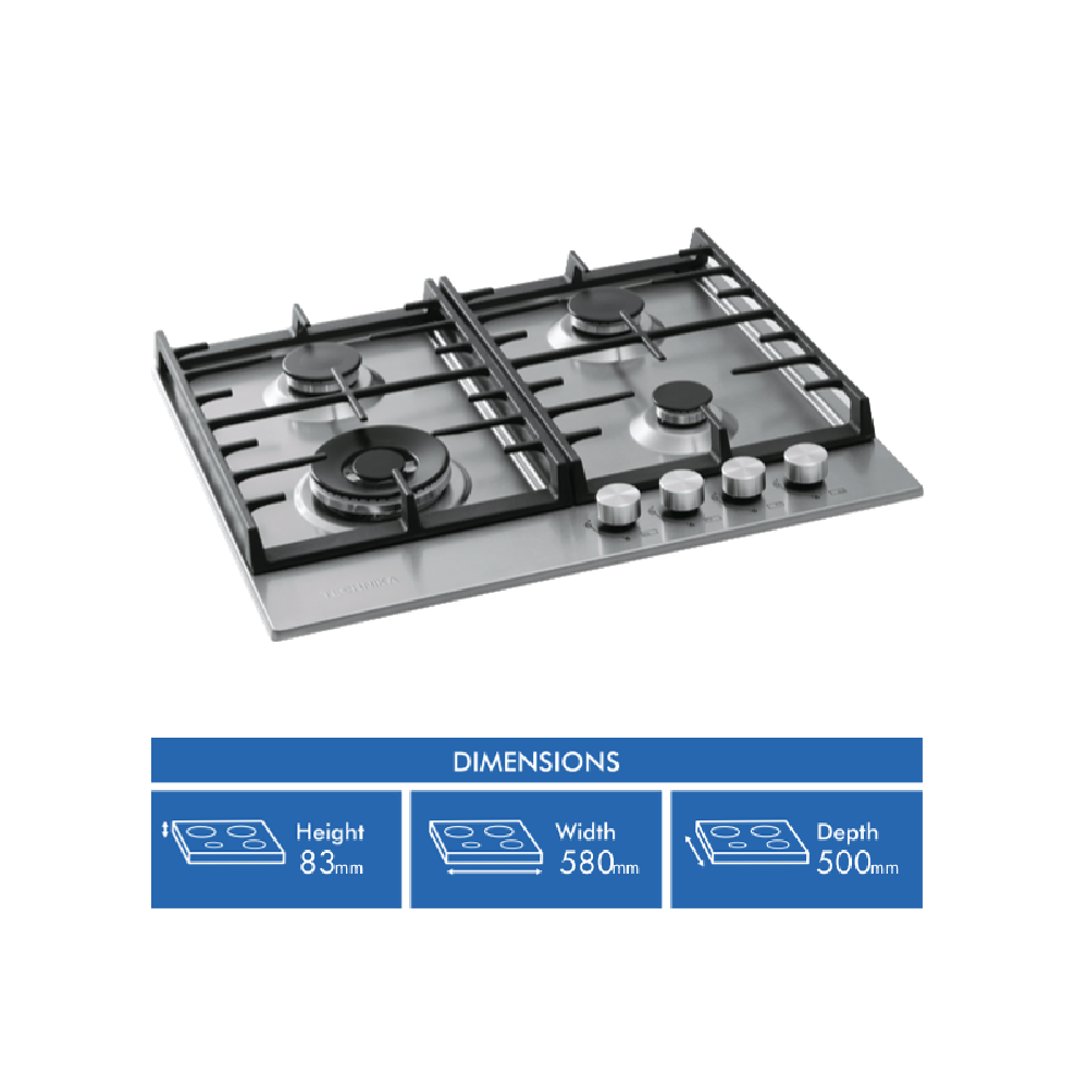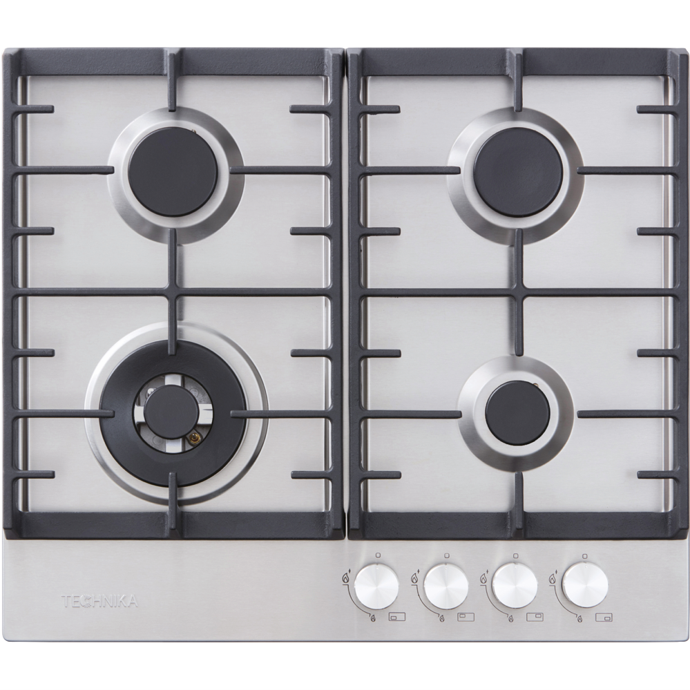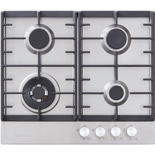 This stainless steel Technika gas cooktop has a high-efficiency wok burner plus three additional burners so you can stir-fry and cook side dishes all at once. It features electronic ignition so you can get to the level of gas you need very quickly by operating the control knobs located at the front for easy access. The Technika TGC6GX features cast iron trivets to effortlessly hold the heaviest of cookware. This 60cm gas cooktop features easy-clean stainless steel for a simple wiping away of any spills with a damp cloth once the cooktop has cooled down.