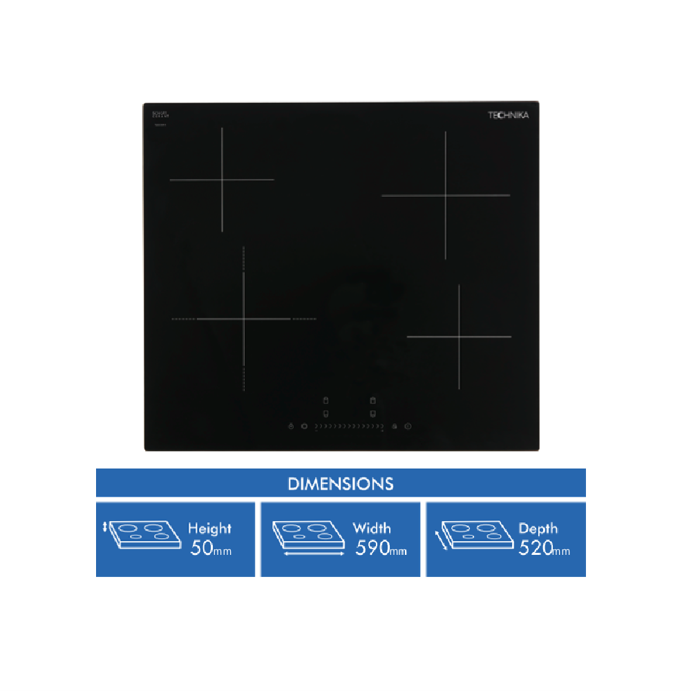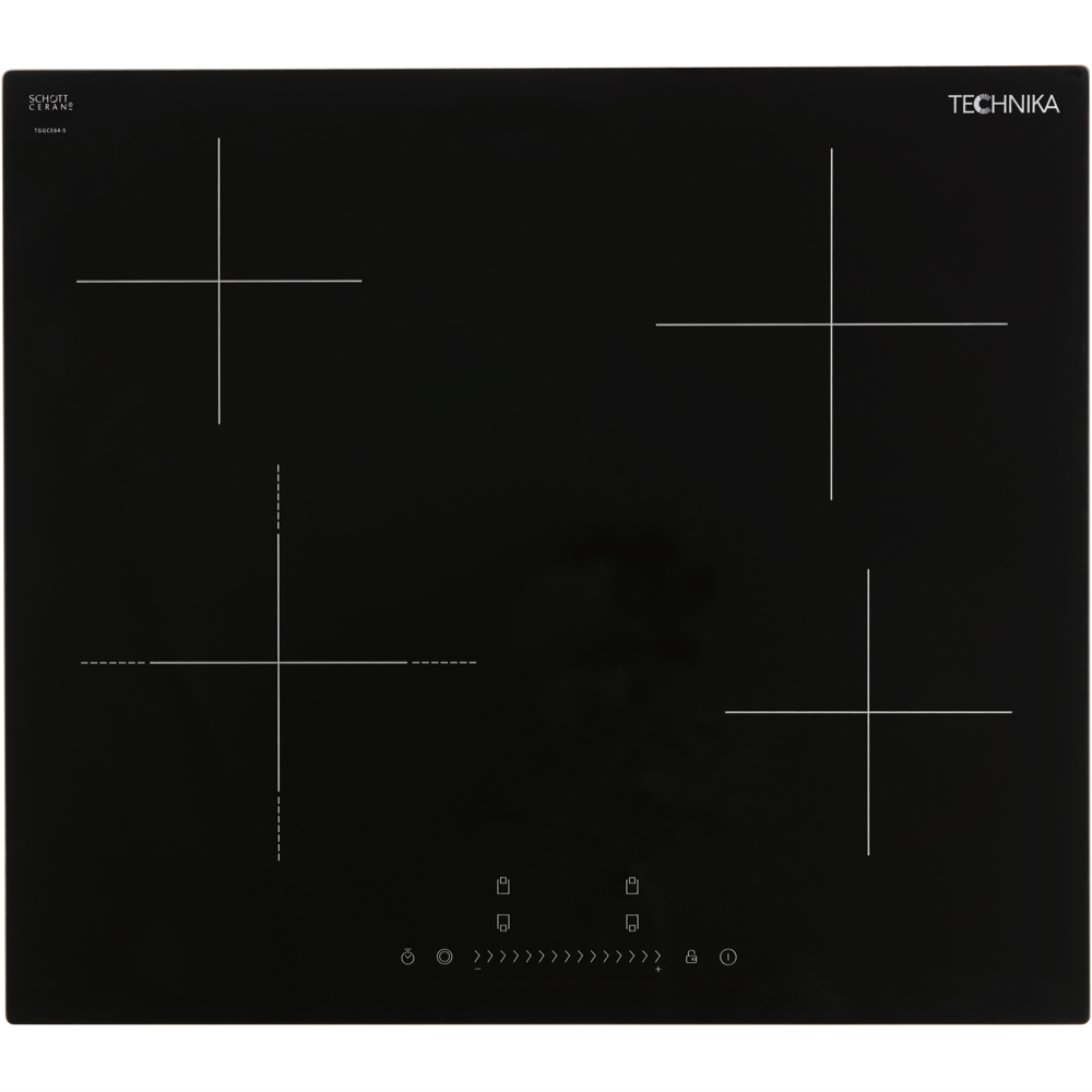This Technika 60cm Ceramic Cooktop features four cooking zones. One of the zones can be extended by selecting the extendable zone key for those times you want the flexibility of cooking a larger dish using a large-sized casserole pot. The Technika TGGCE64-5 has nine power levels for each zone that can be accessed at the user-friendly front slide touch control so you can simmer or melt sauces at the lowest level right through to cooking high-powered stir-fries at the highest level. It has a timer that can be used to turn one or more cooking zones off after the set time has expired - choose a time up to 99 minutes. This Technika ceramic cooktop has residual heat indicators an auto shutdown feature after a period of inactivity as well as a child lock for added safety. Cleaning the premium Schott ceramic glass on your Technika cooktop is nice and easy with a simple wipe when the surface has cooled down. You can cook foods at the exact level you need on this Technika ceramic cooktop with touch control.