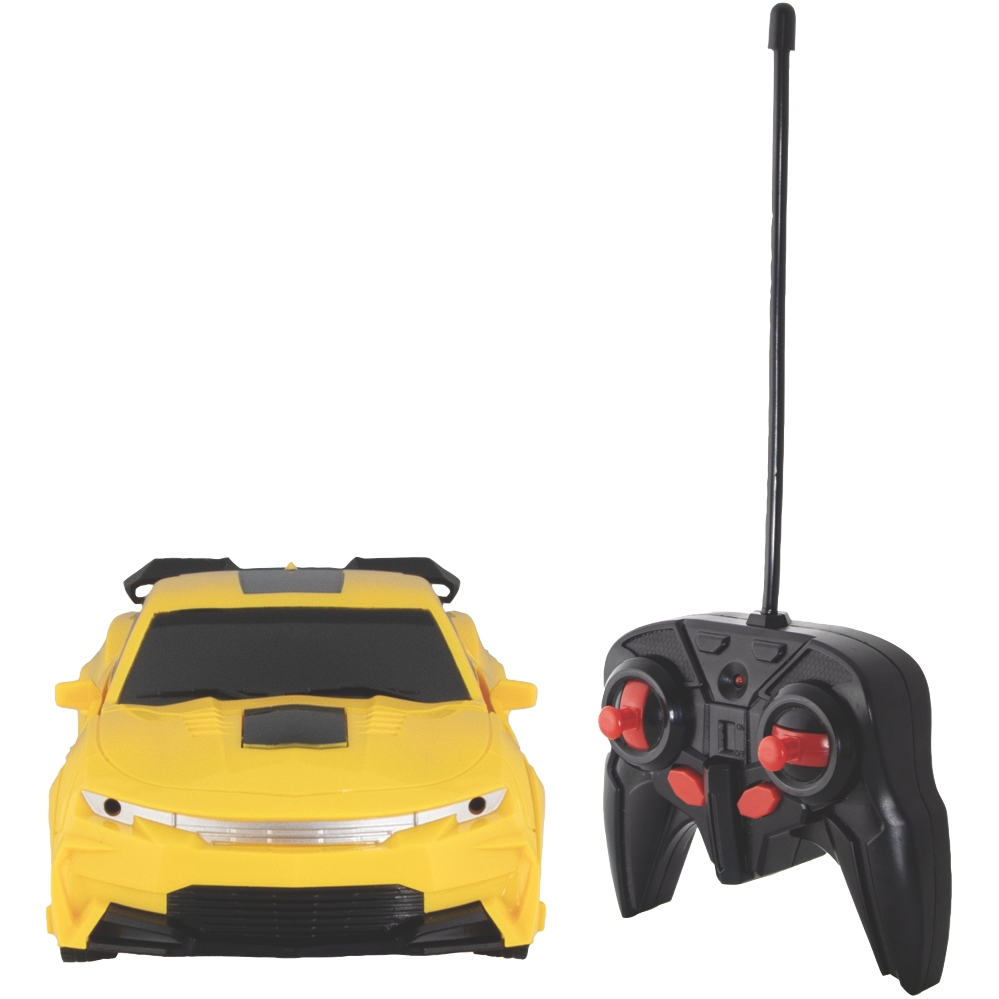 Transform playtime with this remote control car that's actually two toys in one - it changes from a sports car into a robot with the push of a button. The bright yellow colour makes it easy to spot during outdoor adventures while its compact size (box dimensions 180mm x 210mm x 152mm) means it's perfect for taking to a friend's house or the park. The lightweight design (just 1kg) makes it easy for little hands to control and carry around. Comes with a 1-year manufacturer's warranty. Model GAY11297.