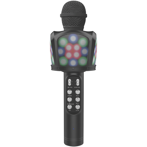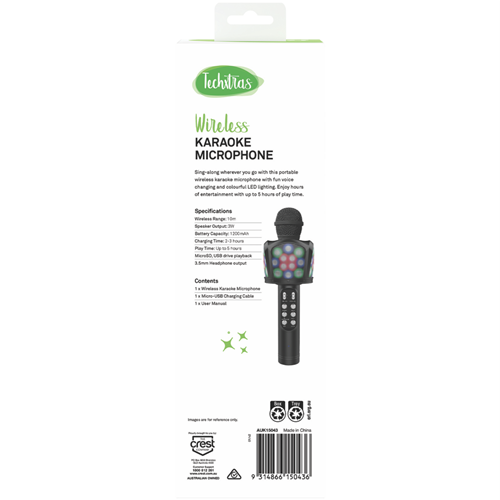Bring the party anywhere with this Black Wireless Karaoke Microphone that connects via Bluetooth to your favourite devices. You can sing along to your playlist without getting tangled in cords giving you freedom to move around while performing your favourite songs. The compact design makes it easy to hold and transport so you're always ready for impromptu karaoke sessions. Model AUK15043.