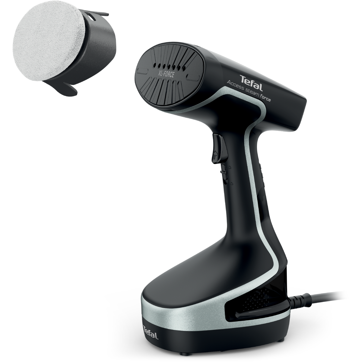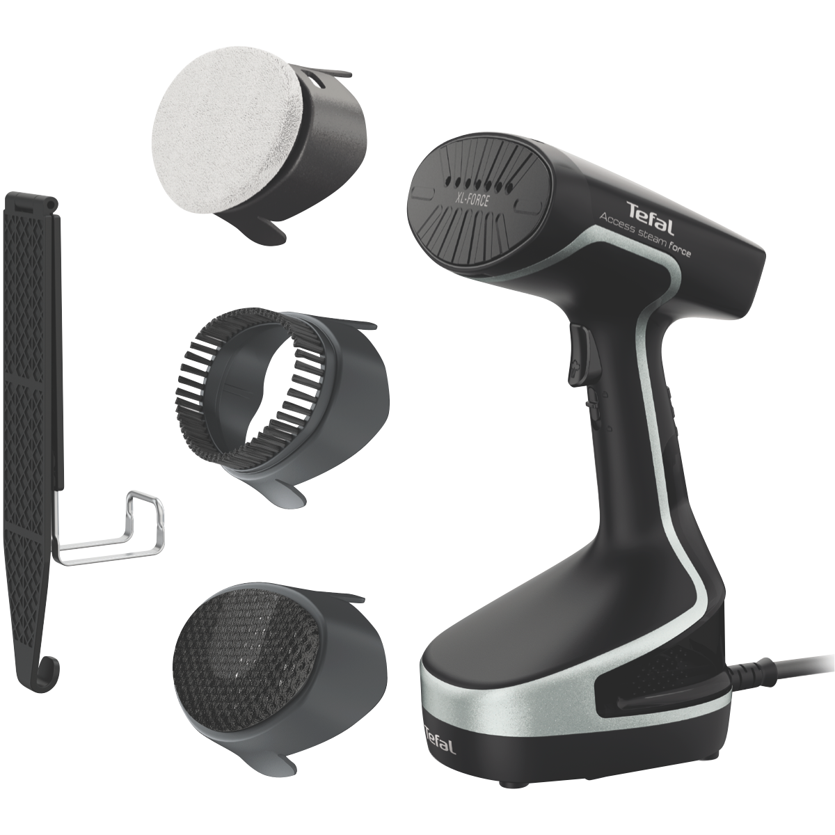 Refresh your wardrobe and renew your style with the Tefal Access Steam Force Handheld Garment Steamer. This powerful handheld steamer delivers professional results in the comfort of your home removing wrinkles and creases from your clothes in seconds. The lightweight compact design allows you to steam garments easily while hanging up or laid out. The cast aluminum soleplate evenly distributes steam and heats up rapidly ready to use in just 2 minutes. With continuous steam output up to 30g/min it tackles even the toughest wrinkles on all fabrics. The large 190ml removable water tank allows up to 10 minutes of continuous steam before refilling. With convenient features like steam on demand auto shut off and integrated accessory storage the Tefal Access makes garment care simple. It includes useful accessories like a door hook microfibre pad fabric brush and steam bonnet to refresh any item. Backed by a 1 year warranty this versatile garment steamer will keep your clothes looking their best every day. The manufacturer's part number for this product is DT8280. Give your wardrobe a quick pick-me-up with the Tefal Access Steam Force today.