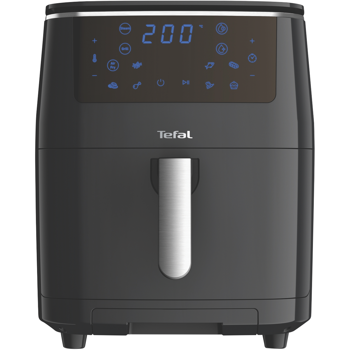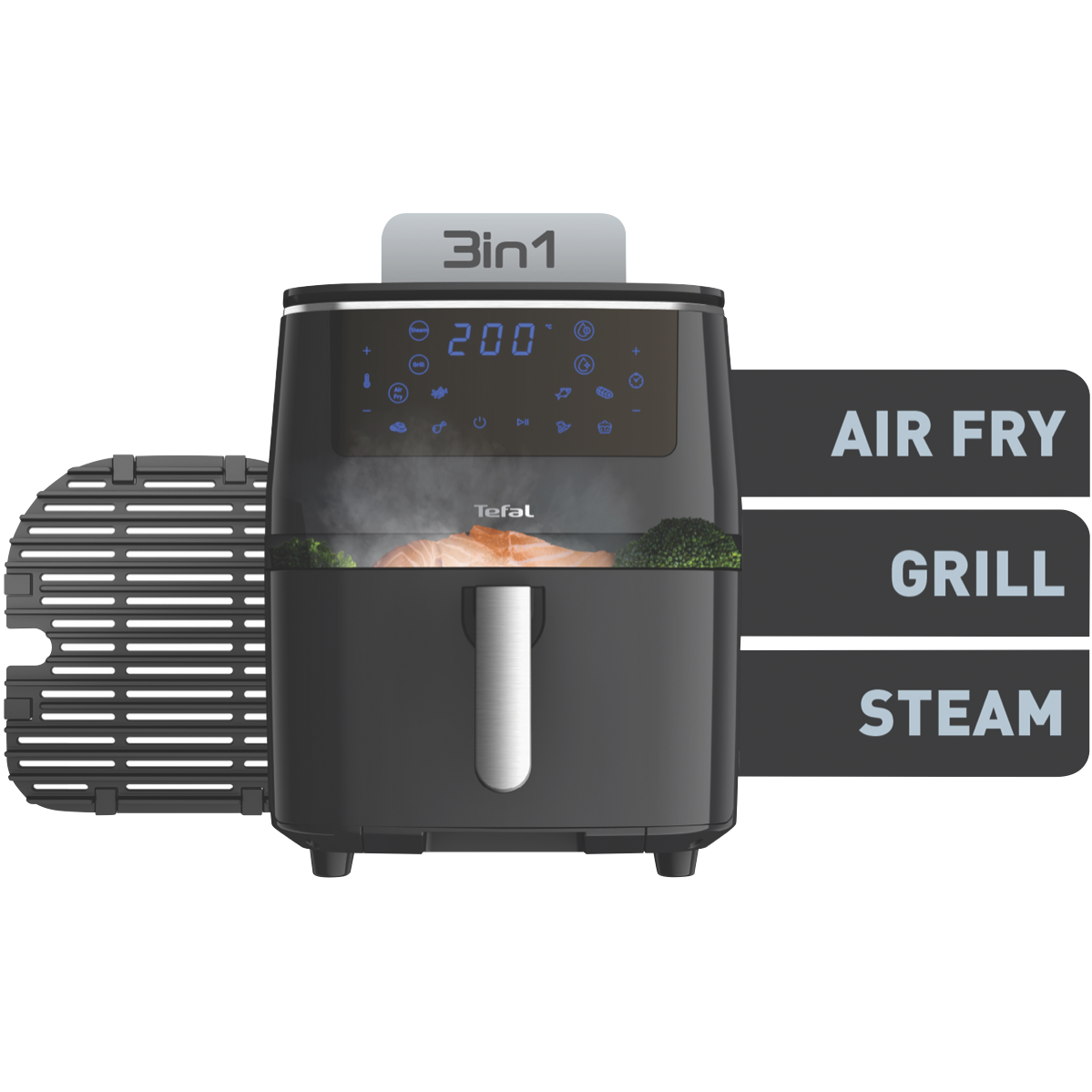 Satisfy all your air frying grilling and steaming needs with the versatile Tefal Easy Fry Grill & Steam XXL Air Fryer. This powerful multi-cooker features 7 automatic cooking programs to easily fry grill steam and bake a wide variety of foods with the touch of a button. Its spacious 6.9 litre capacity caters to large families while the intuitive LED touchscreen and digital controls make operation a breeze. Grill juicy steaks burgers and more on the durable die cast aluminium grid grill plate. Or use the steam function and 1.1 litre water tank to infuse vegetables fish and meat with mouthwatering flavour and moisture. Thanks to Tefal's patented non-stick coating cleaning up is hassle-free. With up to 1900W of power temperature range from 80 to 200°C and a 60 minute timer with auto shut-off you'll have precision control over your cooking. Enjoy fast healthy meals for the whole family with the Tefal Easy Fry Grill & Steam XXL Air Fryer. The manufacturer's part number for this product is FW2018. Discover how this versatile multi-cooker can enhance your cooking today.
