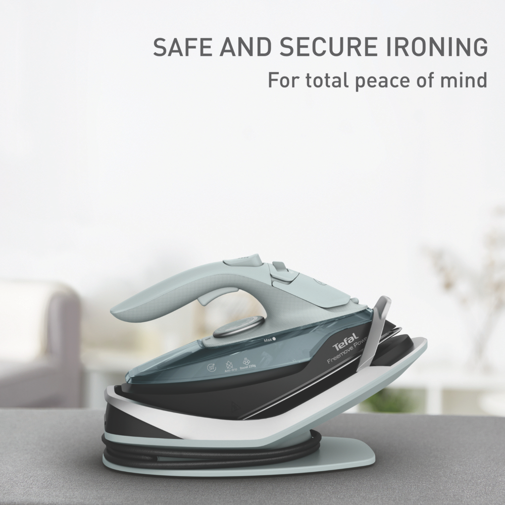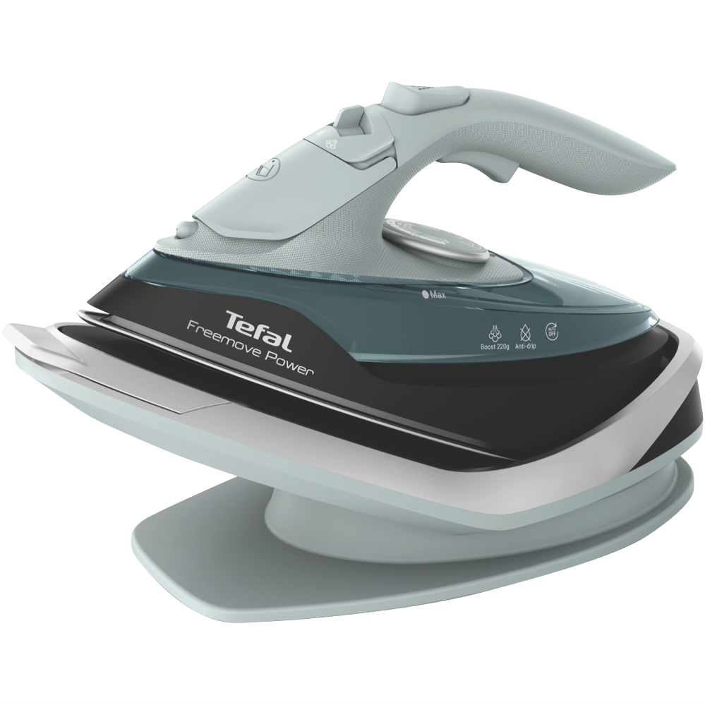 Experience effortless ironing with the Freemove Power Steam Iron a cordless iron that gives you complete freedom of movement. Its scratch-resistant ceramic soleplate glides smoothly over fabrics while delivering a continuous 30g/min steam output. When you encounter stubborn wrinkles the powerful 220g/min steam shot makes quick work of them. For added peace of mind the auto shut-off feature turns the iron off when left unattended. This lightweight iron includes anti-scale setting to keep it performing at its best. Model FV6673.